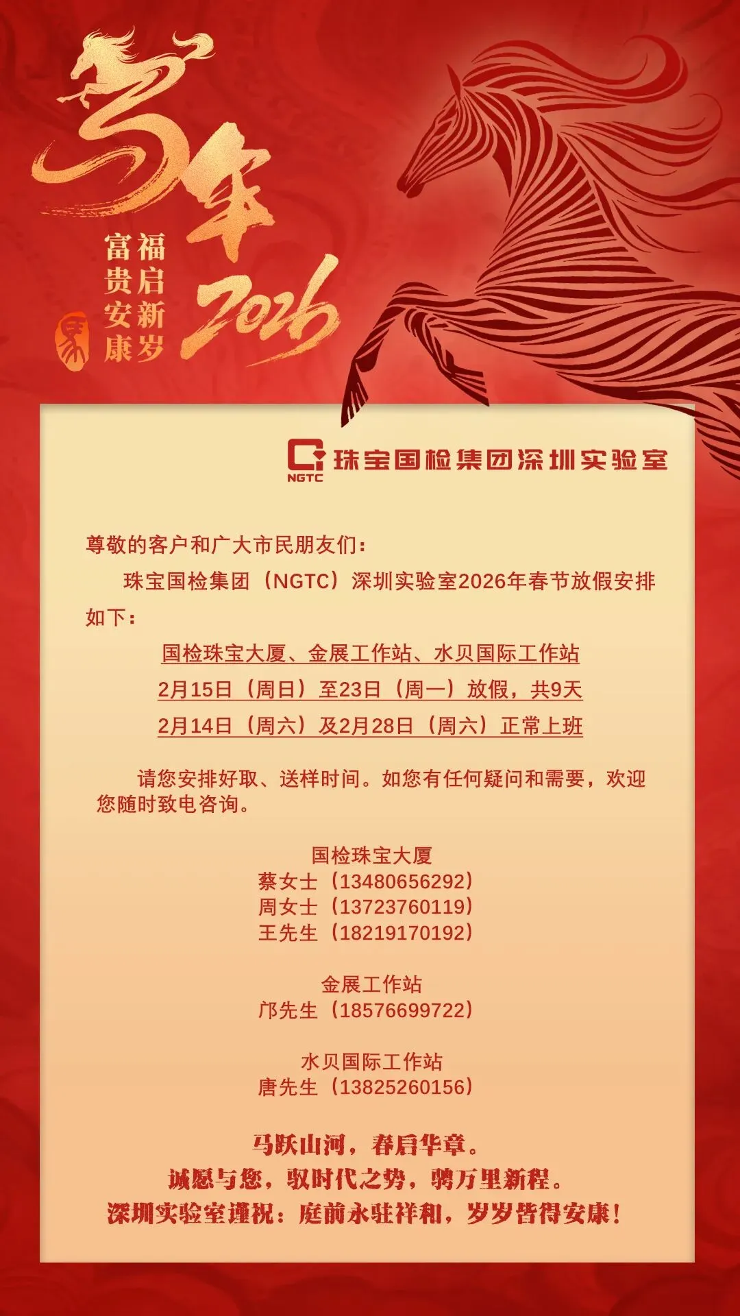 【重要通知】珠宝国检集团深圳实验室2026年春节放假通知