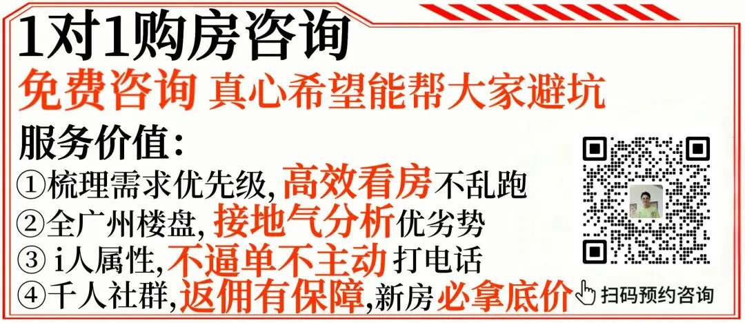 踩盘君提供免费的咨询服务和新房免费服务(开发商给我们佣金),全广州所有新房都有团购优惠,会比你自己去售楼部更省钱,至少能省5位数