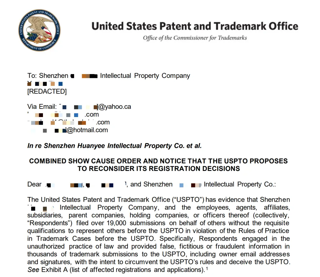 通知内容显示,深圳某知识产权服务商被指系统性违反该局管理规则,通过伪造签名、账户共用等违规手段提交商标相关文件逾 1.9万份,涉及3361个商标被列入拟制裁名录。该服务商被要求在 2月26日前提交回应文件,对自身不应被制裁的理由进行说明。