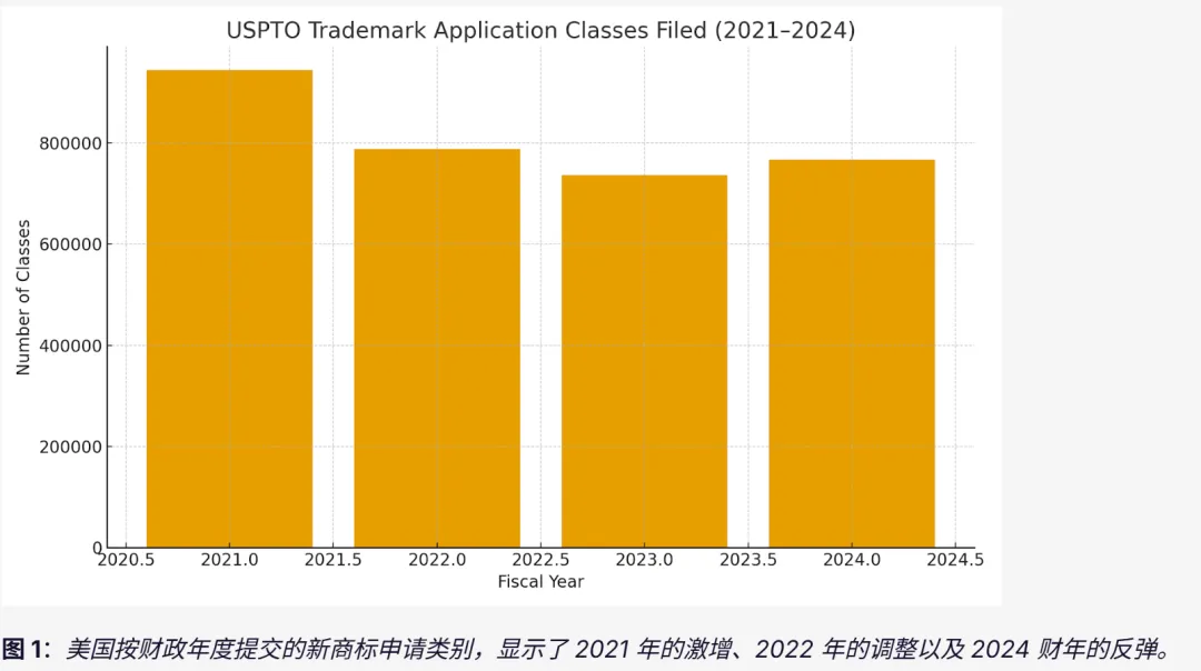 另一方面,伴随全球商标注册申请量逐年攀升,USPTO 对商标全流程合规性的审核标准持续加码。相关数据显示,2024 财年美国商标注册申请量突破 76.7 万个类别,其中自主提交申请的通过率仅为 46%,而经由正规执业律师代理的申请,成功率则维持在 60% 左右,直观体现出合规代理对申请结果的关键影响。
