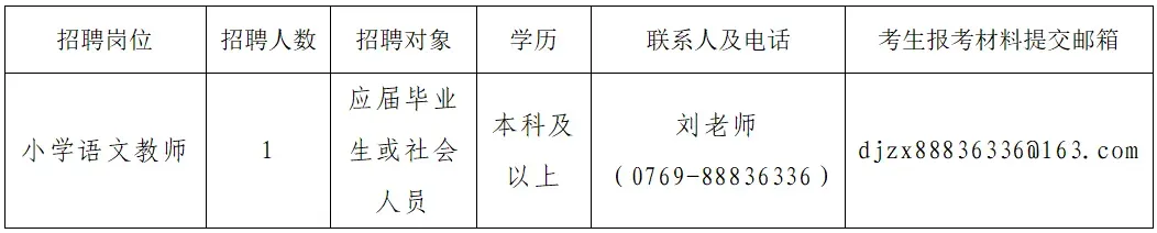 点击关注"东莞招聘站"东莞市道滘镇中心小学是一所全日制公办小学,广东省心理健康教育特色学校、东莞市品牌学校。校址:道滘镇新兴北路65号,校园环境优美,设备完善,管理规范。根据学校教学工作需要,2026年春季招聘1名临时专任教师。