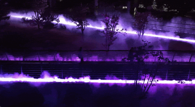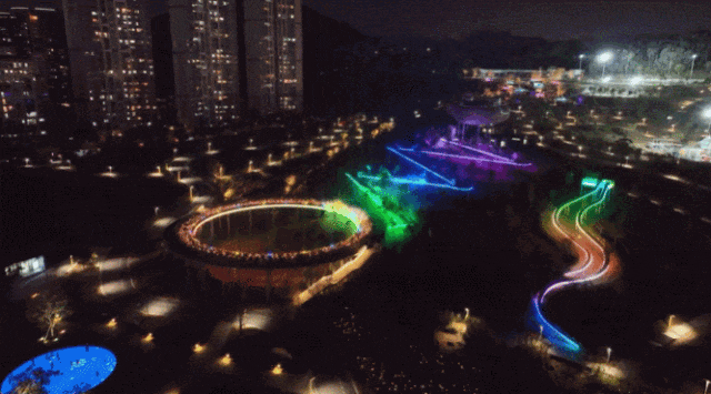 汇德、汇隆大厦楼顶的激光束划破夜幕