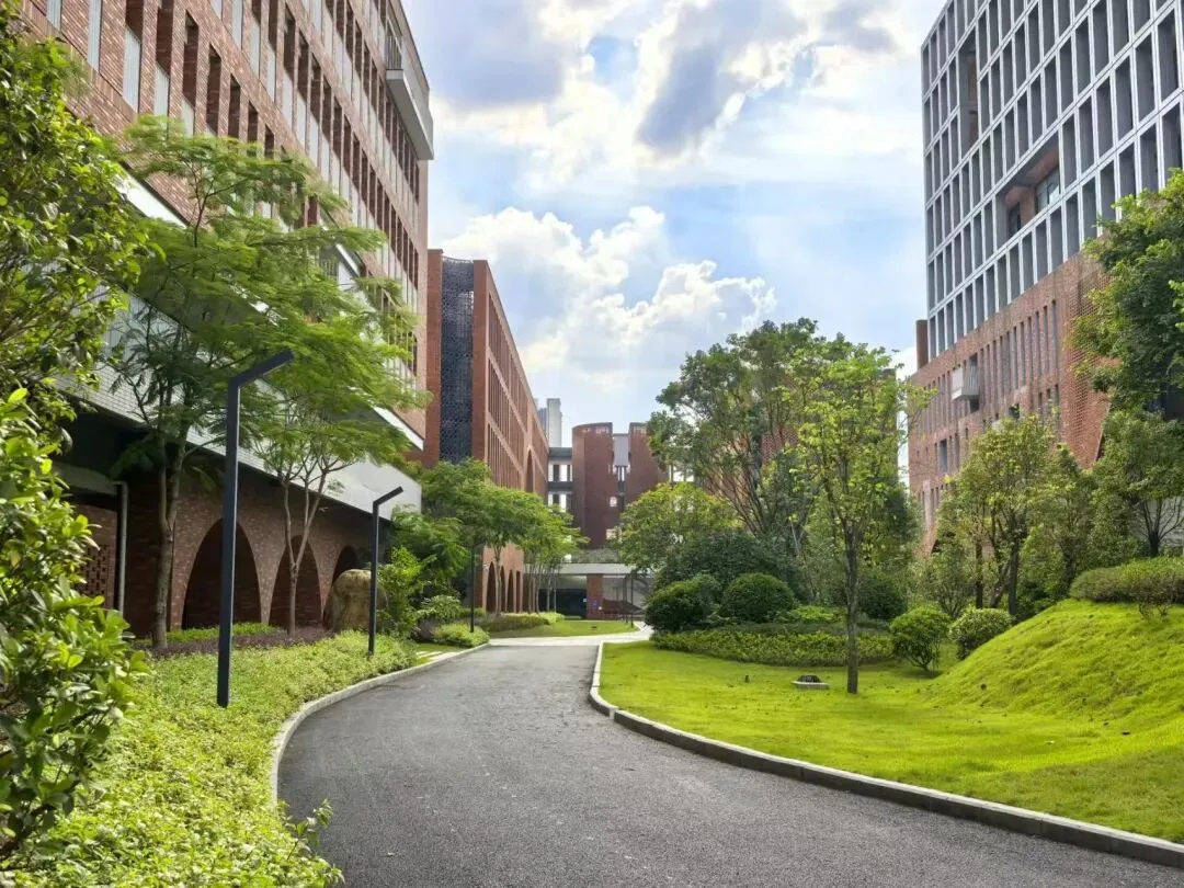 2025年探校时,一进校门就被震撼了。建筑风格不是常规的"新校区标配"(玻璃幕墙+现代简约),而是带着一种设计感和辨识度。
