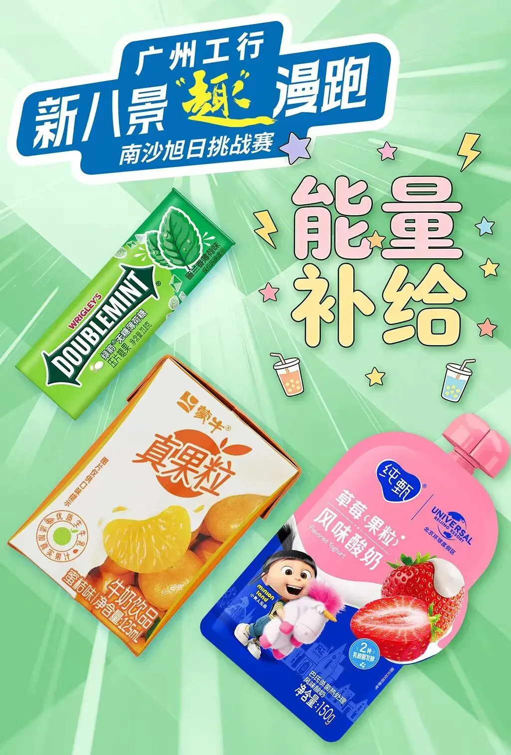 所有参赛选手均可免费获得赛事周边装备、能量补给包,包含牛奶、运动饮料等物资,为你的奔跑之旅加满能量。