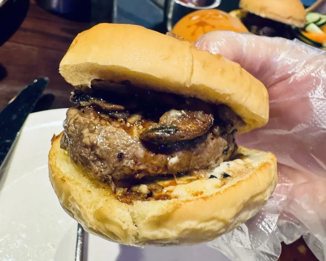 如果说蒙大拿州烧烤汉堡是美式豪放的代表,那么香浓蘑菇牛肉汉堡,便是温柔细腻的诠释,更适合偏爱清淡风味、喜欢菌香的食客。这款汉堡没有烧烤汉堡的浓烈,却用菌香与肉香的温柔碰撞,演绎出不一样的风味惊喜。