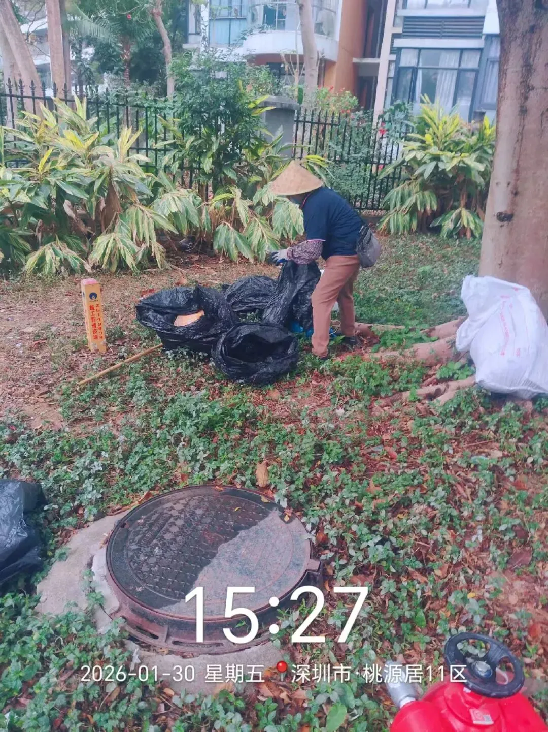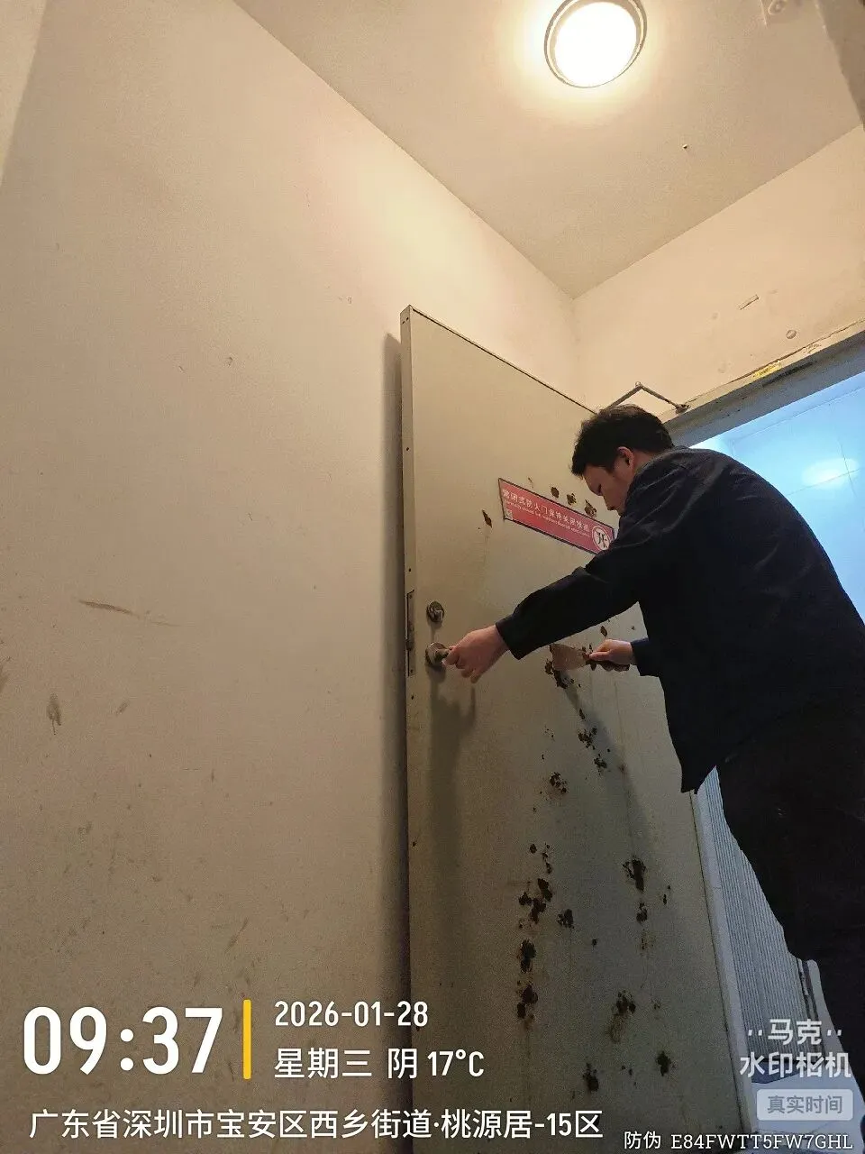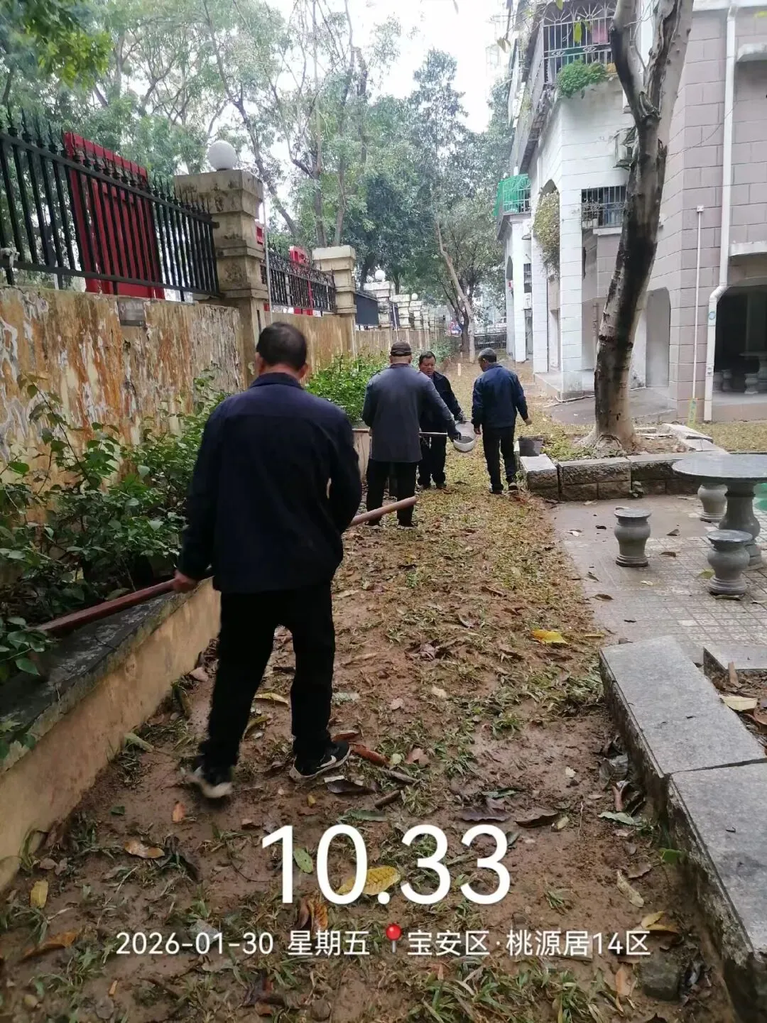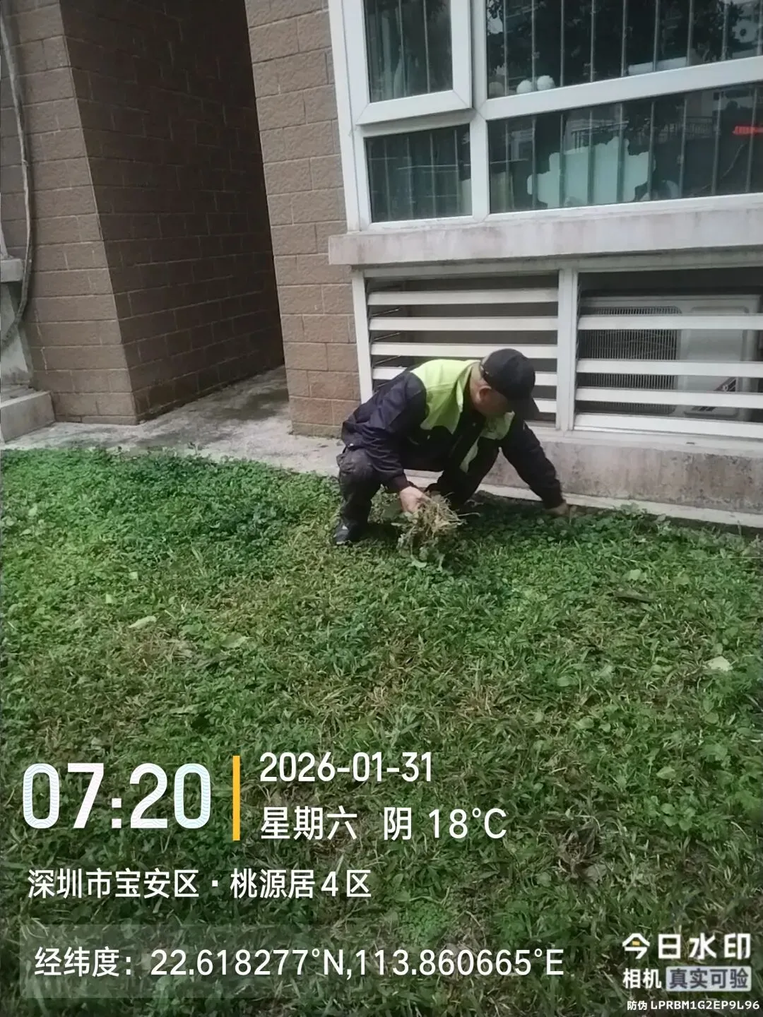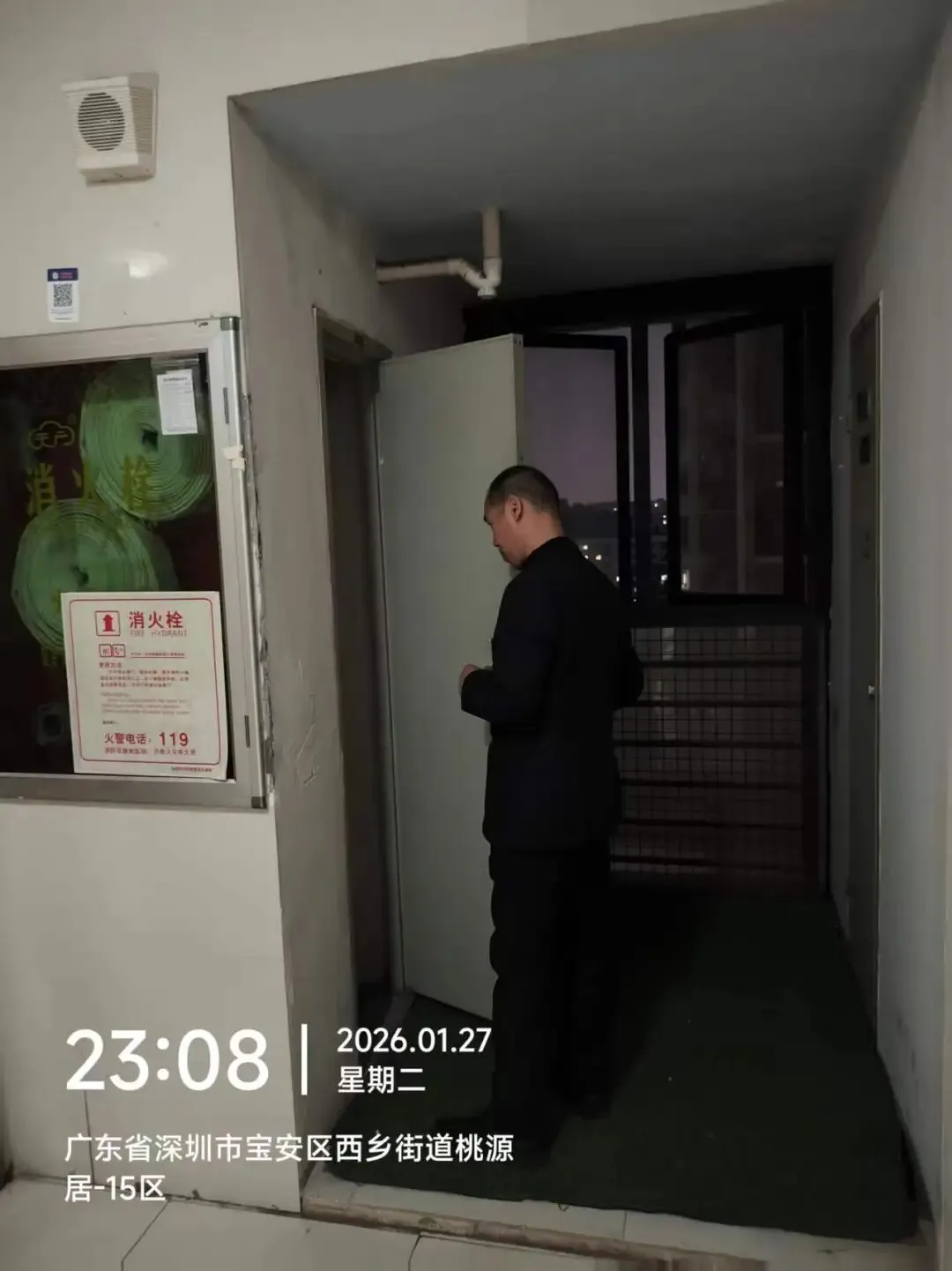 5、消防器材月检:组织秩序员对消防器材、灭火器、消火栓进行月度检查,确保都处于正常使用状态。6、截至2026年2月2日,物业管理处本年度累计受理应急专项维修事务40单。经业委会审核并完成现场报备的共计33单,剩余7单待协调业主完成现场勘查。7、维修损坏的监控、门禁设备共39处。8、完成对各区单元楼层部分防火门变型、门合页损坏、闭门器缺失、水电井门锁损坏,部分生锈安装铁皮,检查维修更换,除锈刷漆。本周已完成9处,累计已完成105处。9、完成对各区主出入口拉铁丝、挂灯笼、布电源线共12处。10、本周重点对桃源居所有垃圾分类点箱罩内外、桶体、排水沟、排水井等进行了全面彻底的冲洗清洁工作。