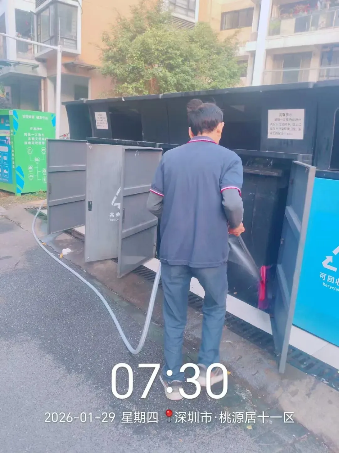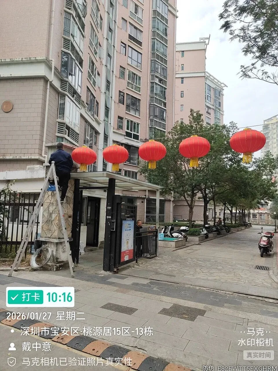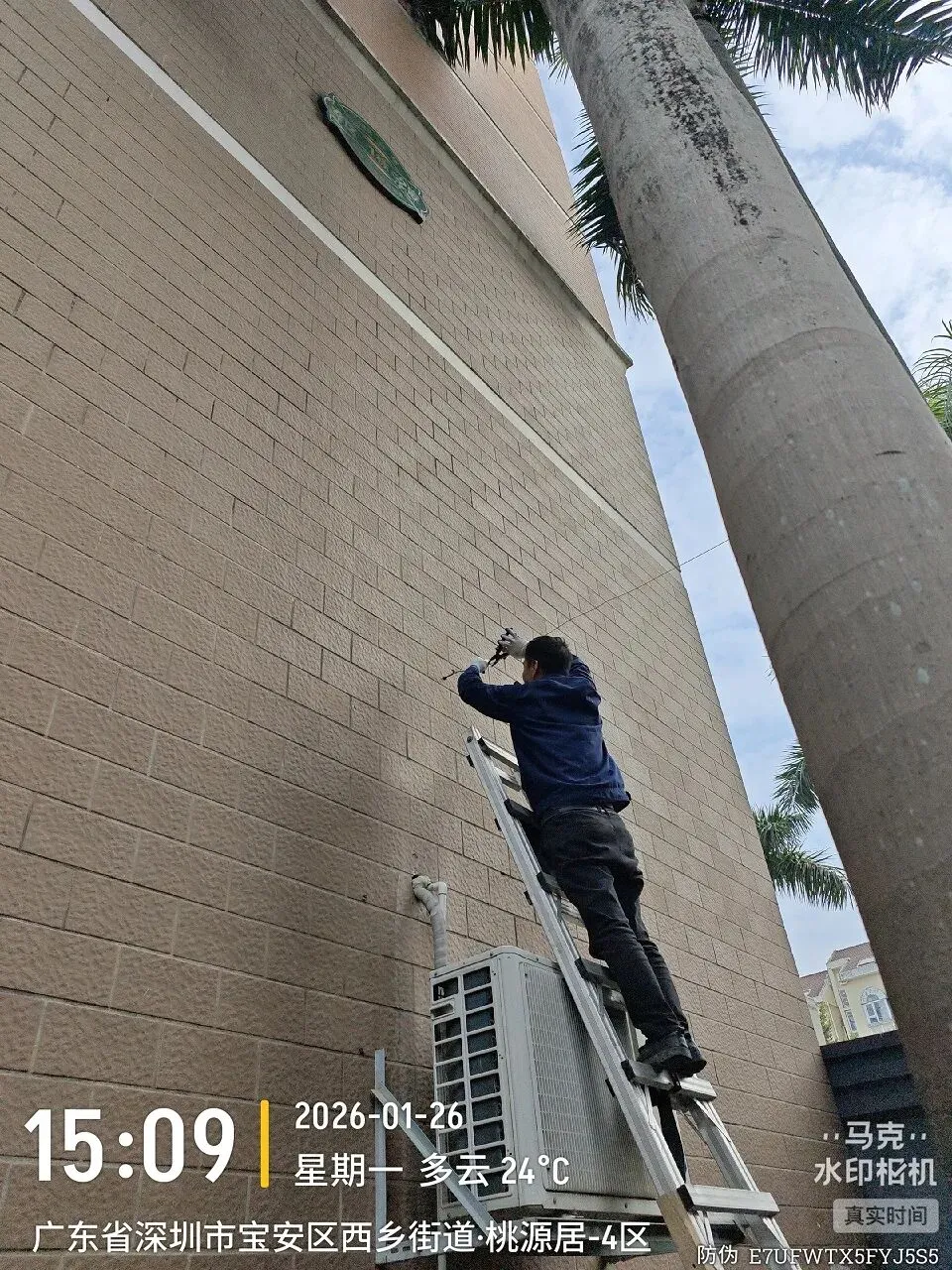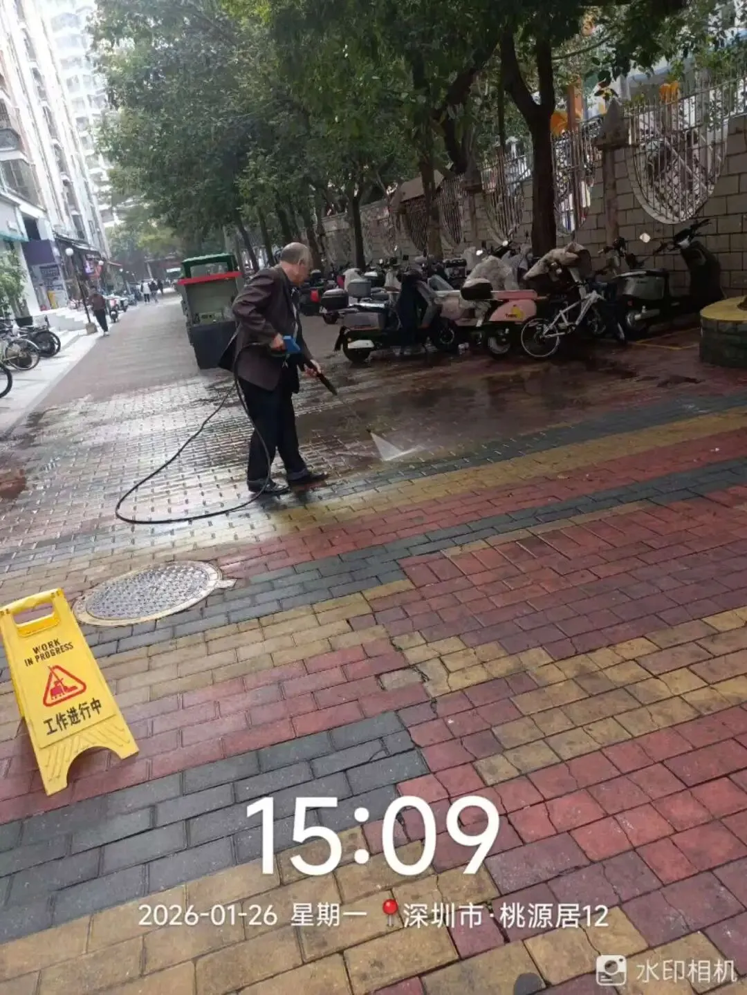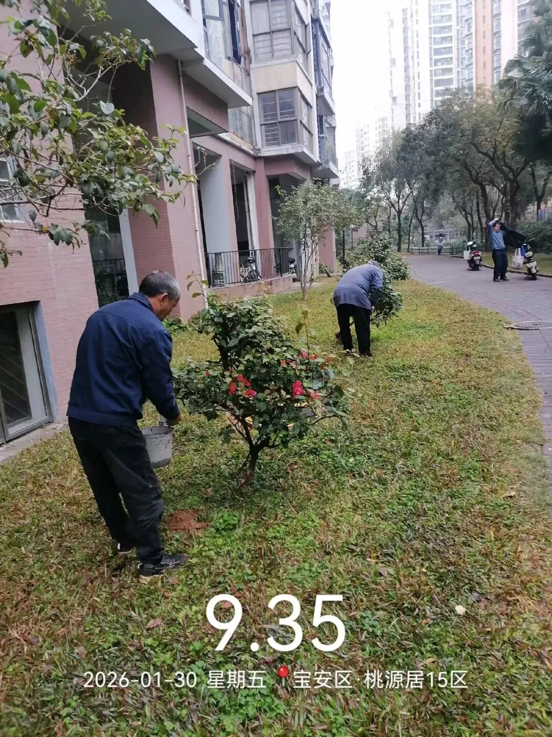 5、消防器材月检:组织秩序员对消防器材、灭火器、消火栓进行月度检查,确保都处于正常使用状态。6、截至2026年2月2日,物业管理处本年度累计受理应急专项维修事务40单。经业委会审核并完成现场报备的共计33单,剩余7单待协调业主完成现场勘查。7、维修损坏的监控、门禁设备共39处。8、完成对各区单元楼层部分防火门变型、门合页损坏、闭门器缺失、水电井门锁损坏,部分生锈安装铁皮,检查维修更换,除锈刷漆。本周已完成9处,累计已完成105处。9、完成对各区主出入口拉铁丝、挂灯笼、布电源线共12处。10、本周重点对桃源居所有垃圾分类点箱罩内外、桶体、排水沟、排水井等进行了全面彻底的冲洗清洁工作。