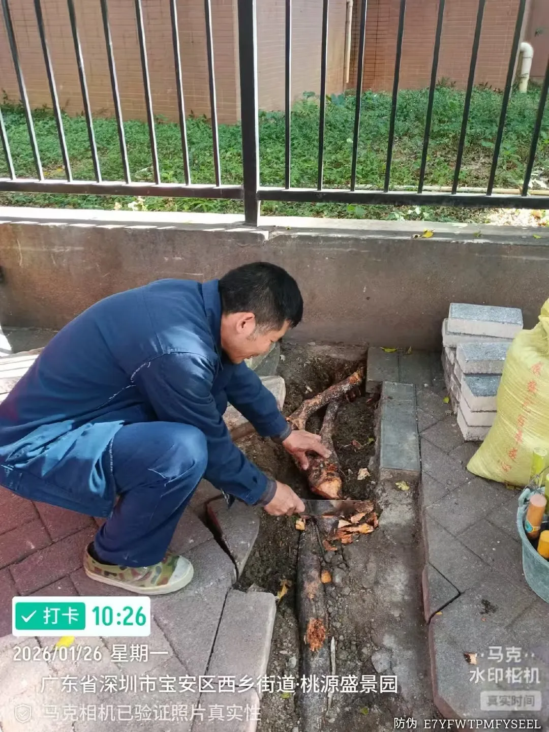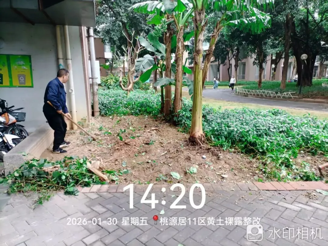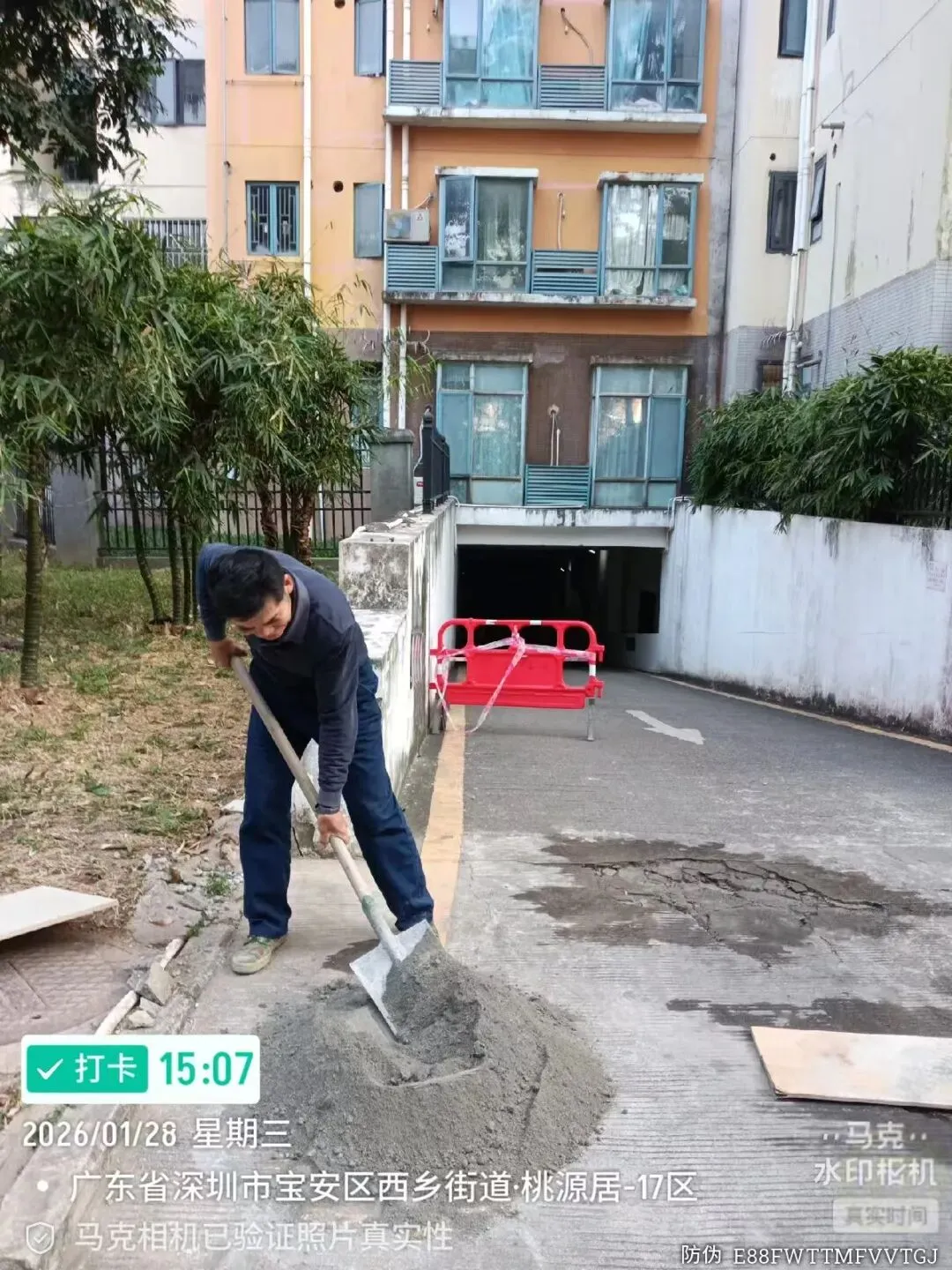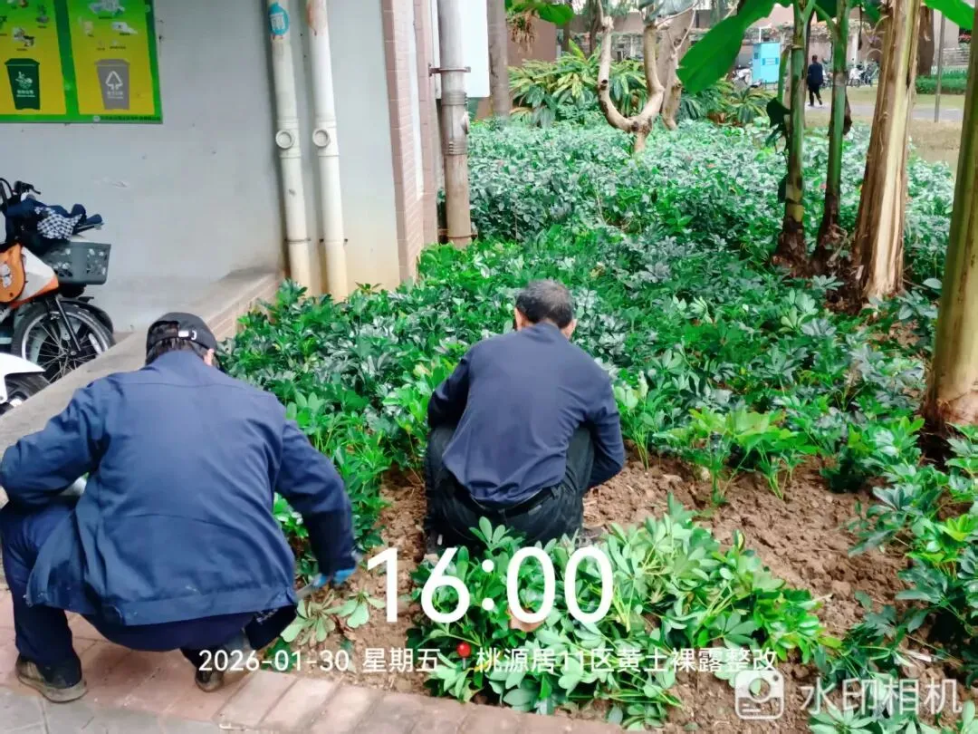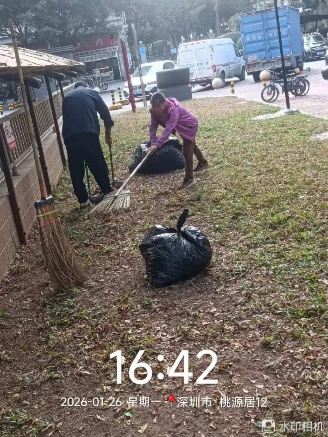 5、消防器材月检:组织秩序员对消防器材、灭火器、消火栓进行月度检查,确保都处于正常使用状态。6、截至2026年2月2日,物业管理处本年度累计受理应急专项维修事务40单。经业委会审核并完成现场报备的共计33单,剩余7单待协调业主完成现场勘查。7、维修损坏的监控、门禁设备共39处。8、完成对各区单元楼层部分防火门变型、门合页损坏、闭门器缺失、水电井门锁损坏,部分生锈安装铁皮,检查维修更换,除锈刷漆。本周已完成9处,累计已完成105处。9、完成对各区主出入口拉铁丝、挂灯笼、布电源线共12处。10、本周重点对桃源居所有垃圾分类点箱罩内外、桶体、排水沟、排水井等进行了全面彻底的冲洗清洁工作。