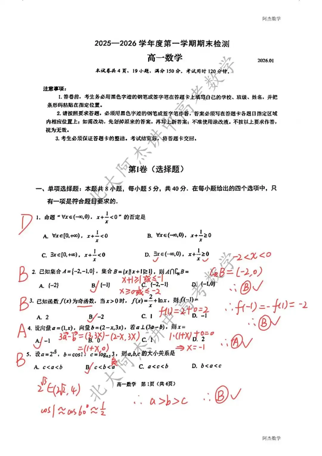 2026年1月刚考的南山区高一上数学试卷YYDS,第7、8、11、14、18、19都很高质量,有想刷好题的高一娃寒假有空建议刷这套查漏补缺哈。阿杰老师小手一挥,简单分享一下阿杰版的全部19道题的解析,希望对热爱数学的娃有点拨作用~~觉得有用的,请分享给你身边的好朋友,尤其是爱数学、想学好数学的好朋友们~~