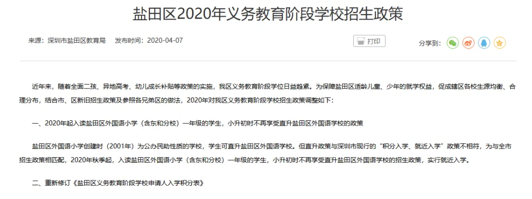 这意味着,从2026年(含2026年)起,盐田区外国语小学(含东和分校)毕业生将不再享受直升政策,须通过统一的就近入学渠道升入初中。
