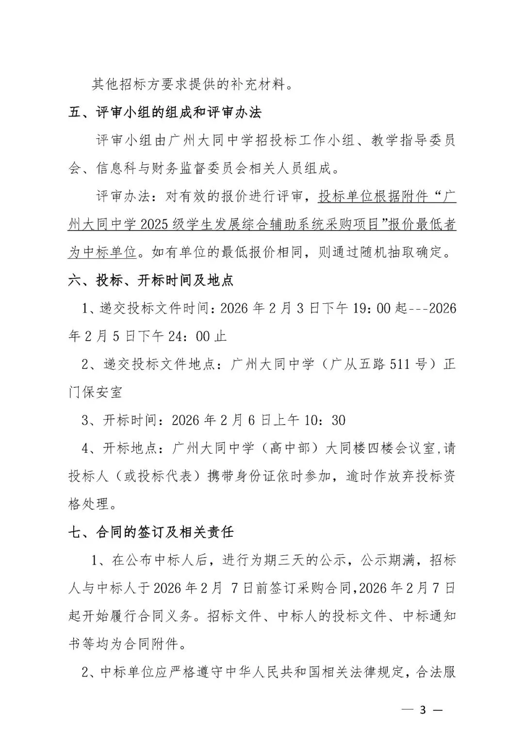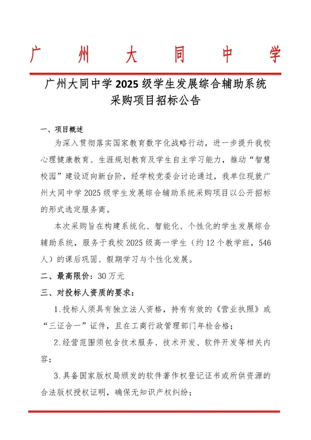 >广州大同中学2025级学生发展综合辅助系统采购项目招标公告