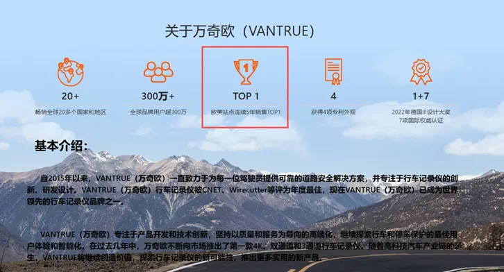 Vantrue连续5年霸榜欧美站点第一 图源:Vantrue
