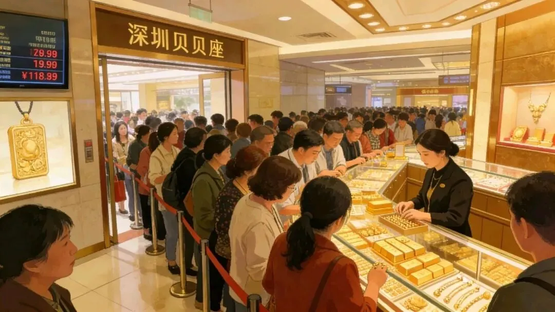 金融市场的恐慌,却成了实物黄金消费市场的“狂欢信号”。金价暴跌的消息一出,全国最大的黄金珠宝交易中心深圳水贝,瞬间被前来“抄底”的人群包围,这里的热闹程度,比春节前的年货市场还要火爆,客流量较平日翻倍,较普通周末激增两三倍,彻底开启了“全民抢金”模式。走进水贝金座、水贝一号大厦,目之所及皆是密密麻麻的人群,负一层的零售卖场里,每家金店的柜台前都围得里三层外三层,选款、称重、付款的队伍排到了门口,收银台的工作人员忙得连喝水、上厕所的时间都没有,手指在计算器上飞快敲击,嘴里不停报着价格,“大盘价1126.5元/克,加15元工费,到手1141.5元/克”,这句话成了市场里最常听到的声音 。