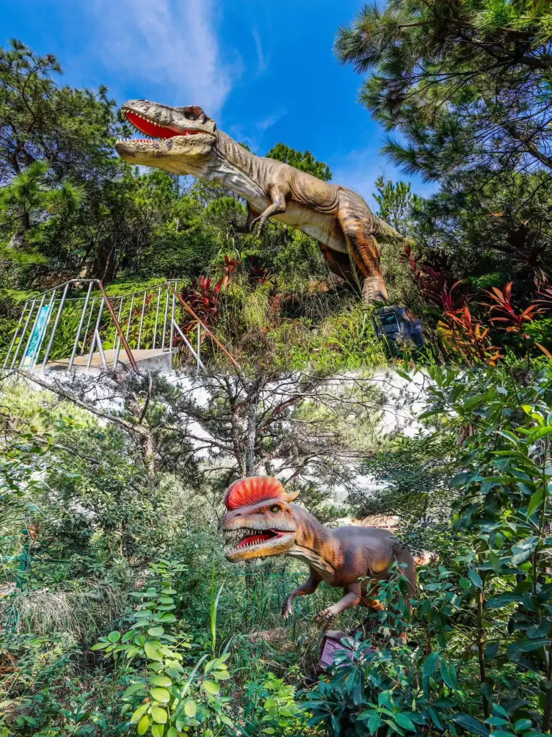 【探秘侏罗纪】景点以仿真活体恐龙展品主,以科普教育,恐龙趣观赏,互动游乐于一体的恐龙主题乐园。一场穿越时空的恐龙时代旅行,一次亿万年前的探索之旅凶猛的霸王龙、彪悍的剑龙、巨大的角鼻龙… …这些远古时代的霸主坐上了时光隧道。重回了恐龙的故乡一起来隐贤山庄探索恐龙的世界吧!