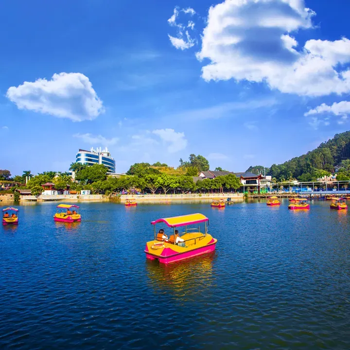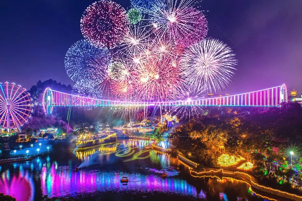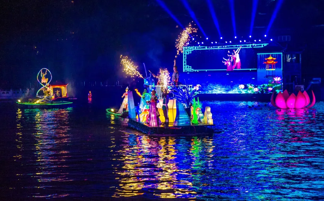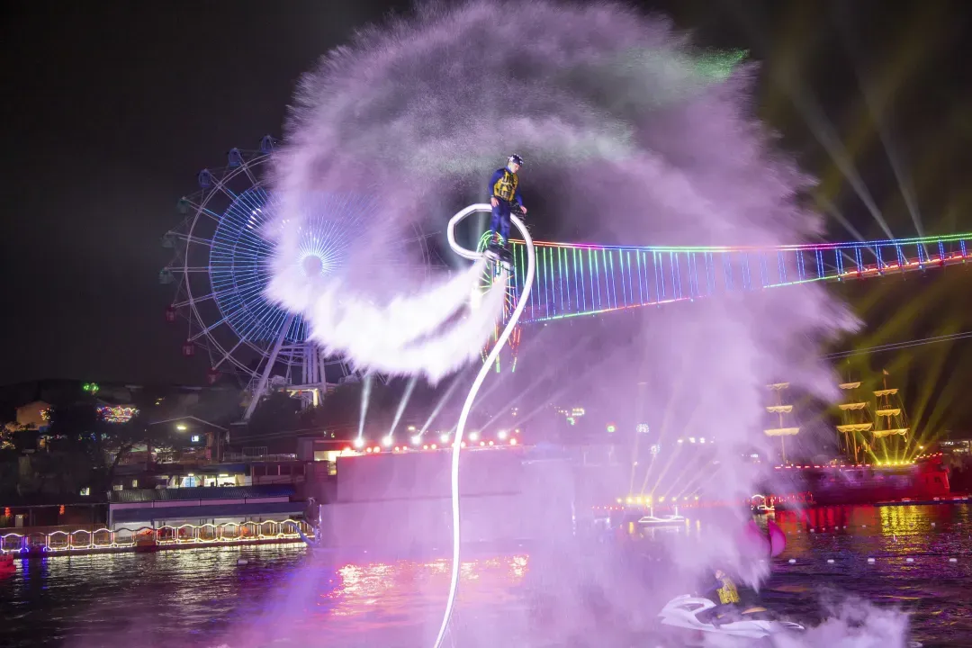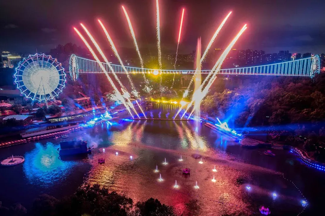 《梁祝》烟花秀:全新打造的大型实景《梁祝》烟花秀,以中国传统民间故事《梁祝》为主题IP,共分为烈焰、相遇、爱情、重生、化蝶五大篇章,分别通过水面演艺、灯光、水幕喷泉、投影、音乐等形式进行演绎,以其恢弘壮观的场景和表演,让游客在观看过程中,领悟到爱情的真谛,生活的美好,带领游客享受沉浸式的观看、互动体验。