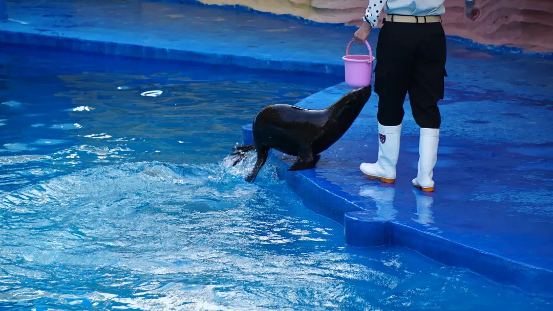 【海洋剧场】观看精彩的海狮表演, 海狮将上演水中芭蕾霹雳舞、水中套圈、空中飞跃、倒立特技等精彩表演。