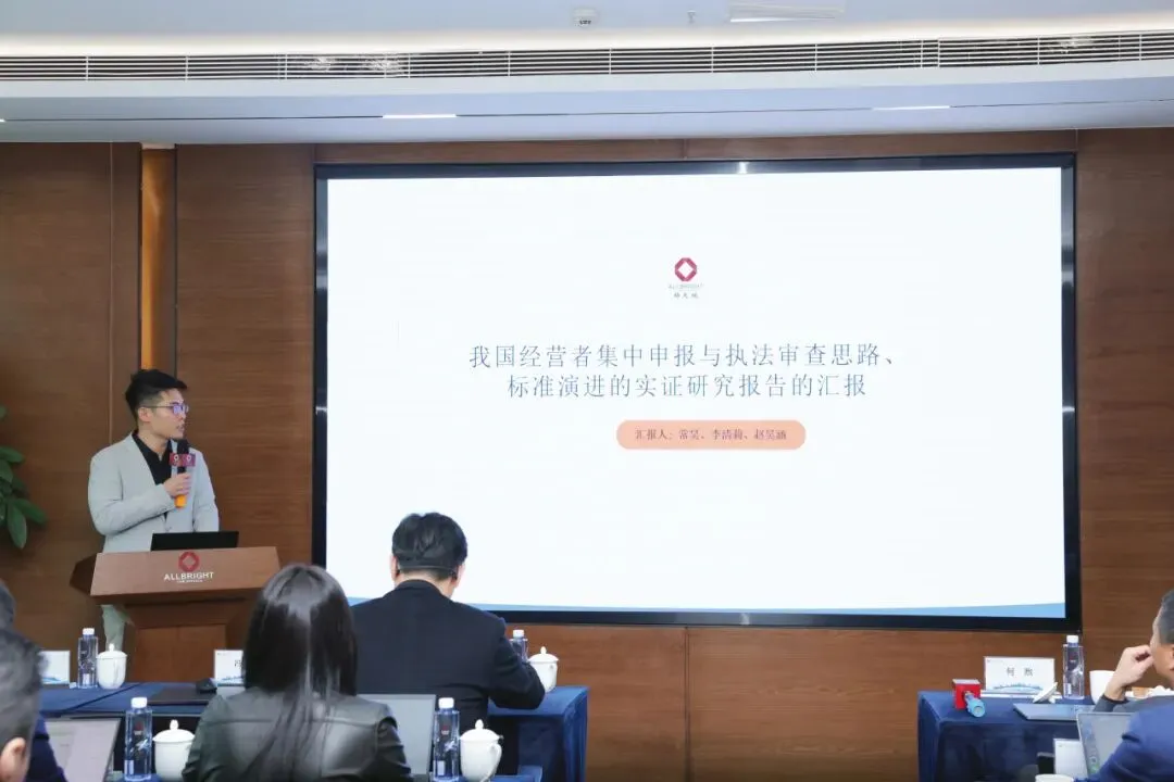 图为管委会主任、高级合伙人宋征律师为《我国经营者集中申报与执法审查思路、标准演进的实证研究报告》课题组颁奖