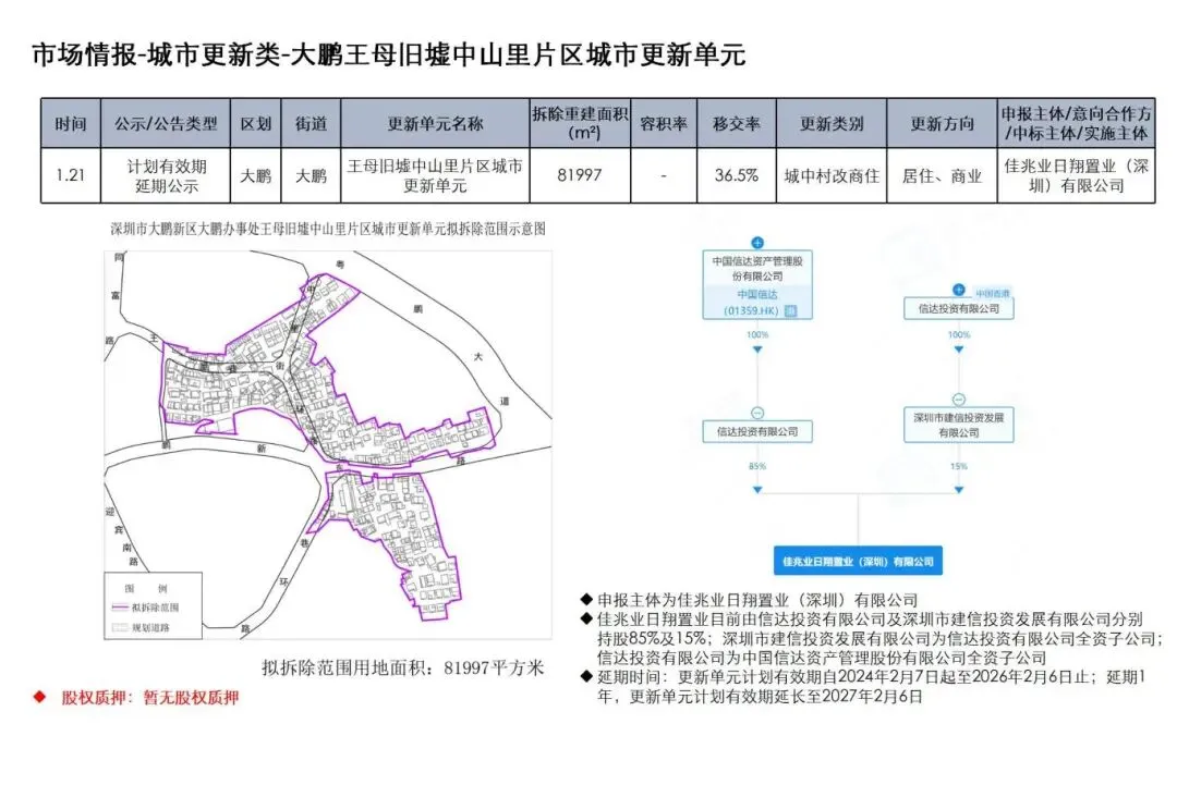 佳兆业 大鹏王母旧墟中山里片区城市更新单元计划有效期延期公示