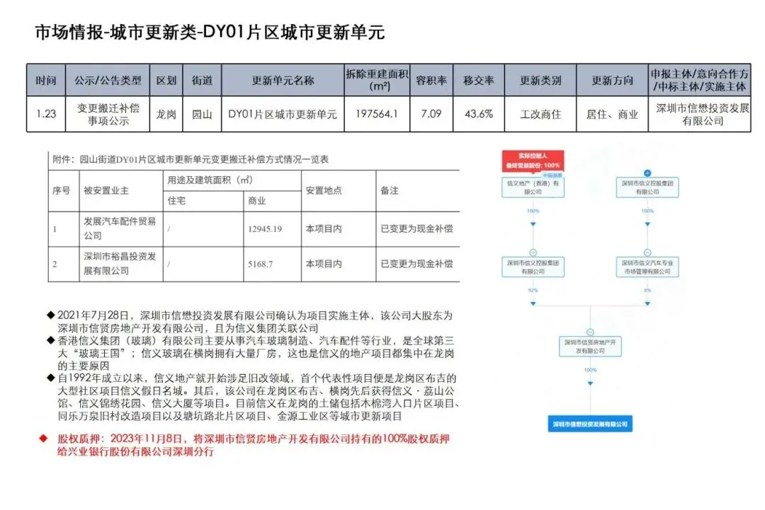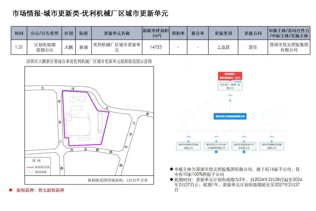 信义 大鹏优利机械厂区城市更新单元计划有效期延期公示、龙岗园山DY01片区城市更新单元变更搬迁补偿事项公示