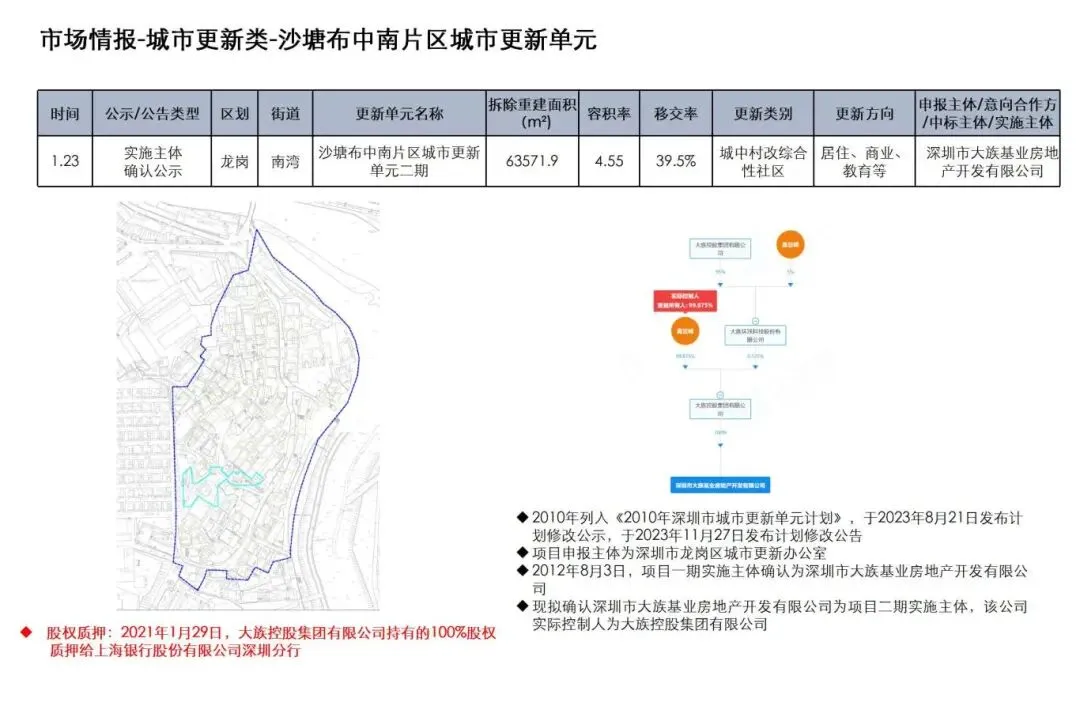 大族 南山北头村城市更新单元一期行政调解事项公告、龙岗沙塘布中南片区城市更新单元二期实施主体确认公示