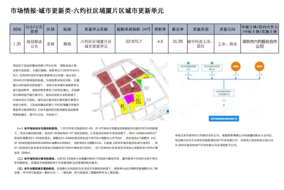 星河 龙岗六约社区埔厦片区城市更新单元规划修改公告