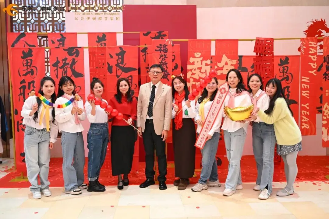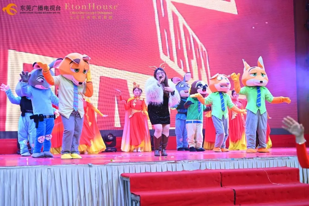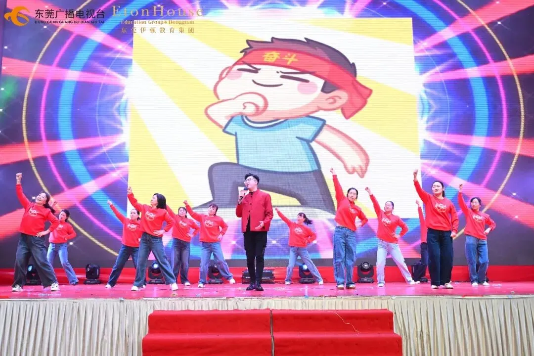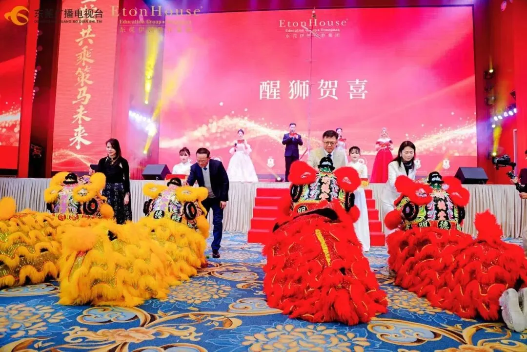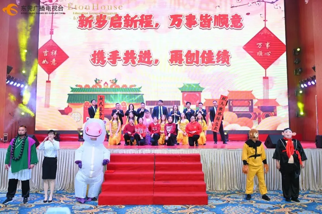 随后,精彩的粤式醒狮表演点燃全场热情。在董事长董旭原先生的带领下,杨清、陈玉凤、易丽华一同为醒狮点睛,寓意“福星高照、鹏程万里、笑口常开、顶天立地、左右逢源、六六大顺”,为全体伊顿人送上新春最诚挚的祝福。 集团副董事长杨清先生、东莞市石碣新民学校总校长冷芬腾、东莞海逸外国语学校总校长吕慧芬、东莞暨大港澳子弟学校执行校长金礼贤及伊顿教育集团总园长郭燕群分别上台致辞,回顾过去一年的教育成果,并对新一年的发展提出殷切期望。 最后,董事长董旭原先生作压轴致辞,他勉励全体教职工:“让我们始终秉持教育初心,携手并肩,共同开创伊顿更加辉煌的明天! 本次活动中,来自各校区的教职工们精心准备了一系列形式多样、内涵丰富的文艺表演。既有充满童趣与活力的幼儿舞姿,也有融入现代元素与传统文化的情景剧目;既有温婉动人的浪漫旋律,也有动感十足的双语歌舞。这些节目无不凝聚着老师们在工作之余的辛勤付出与无限创意,充分展现了伊顿教职工队伍多才多艺、昂扬向上的精神风貌,也体现了集团大家庭的凝聚力和向心力。 本次活动设置了十轮抽奖及多轮互动游戏,奖品涵盖实用家电、数码产品、现金红包等,中奖率高达100%。现场气氛热烈,欢呼声不断,一次次将活动推向高潮。
