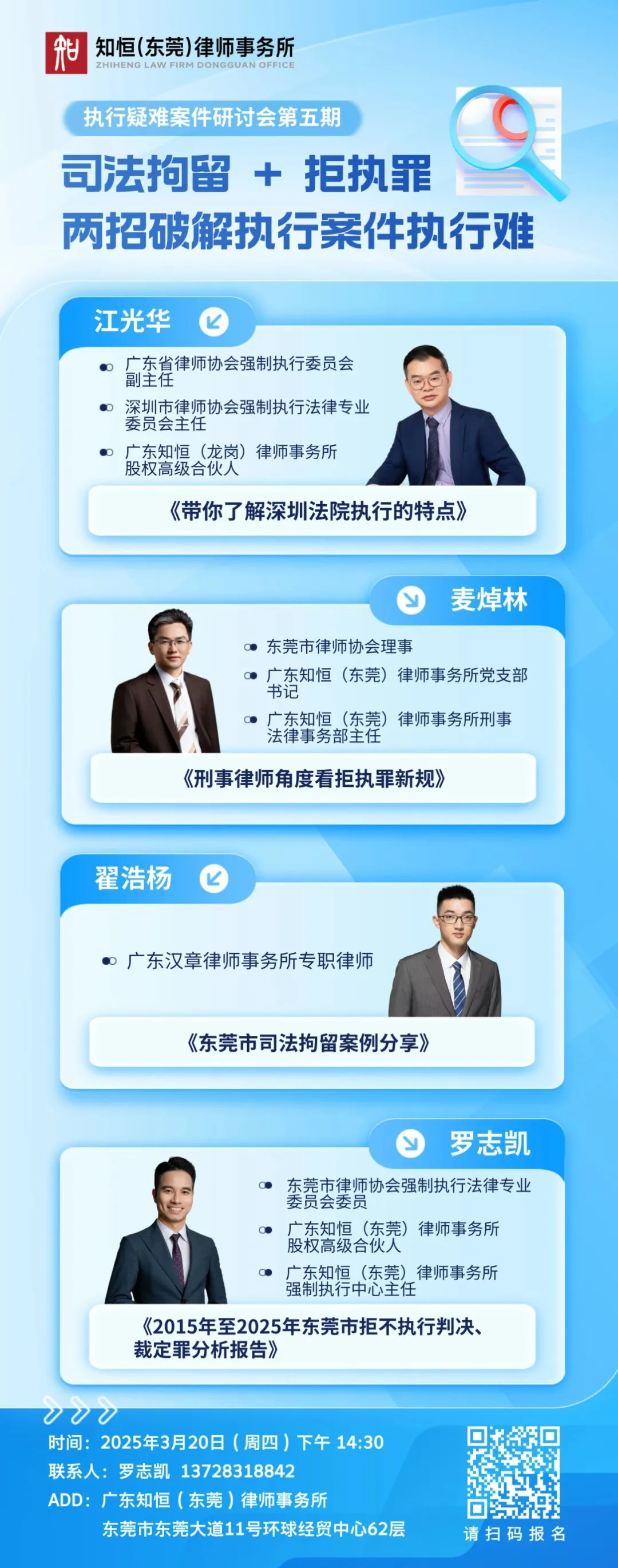 强总中心发布 《2015-2025年东莞市拒执罪分析报告》,聚焦 “司法拘留+拒执罪” ,邀请深圳律协强执委主任江光华主任等嘉宾,深度解析破解“执行难”的强力手段,吸引了广深佛惠等多地律师参与。