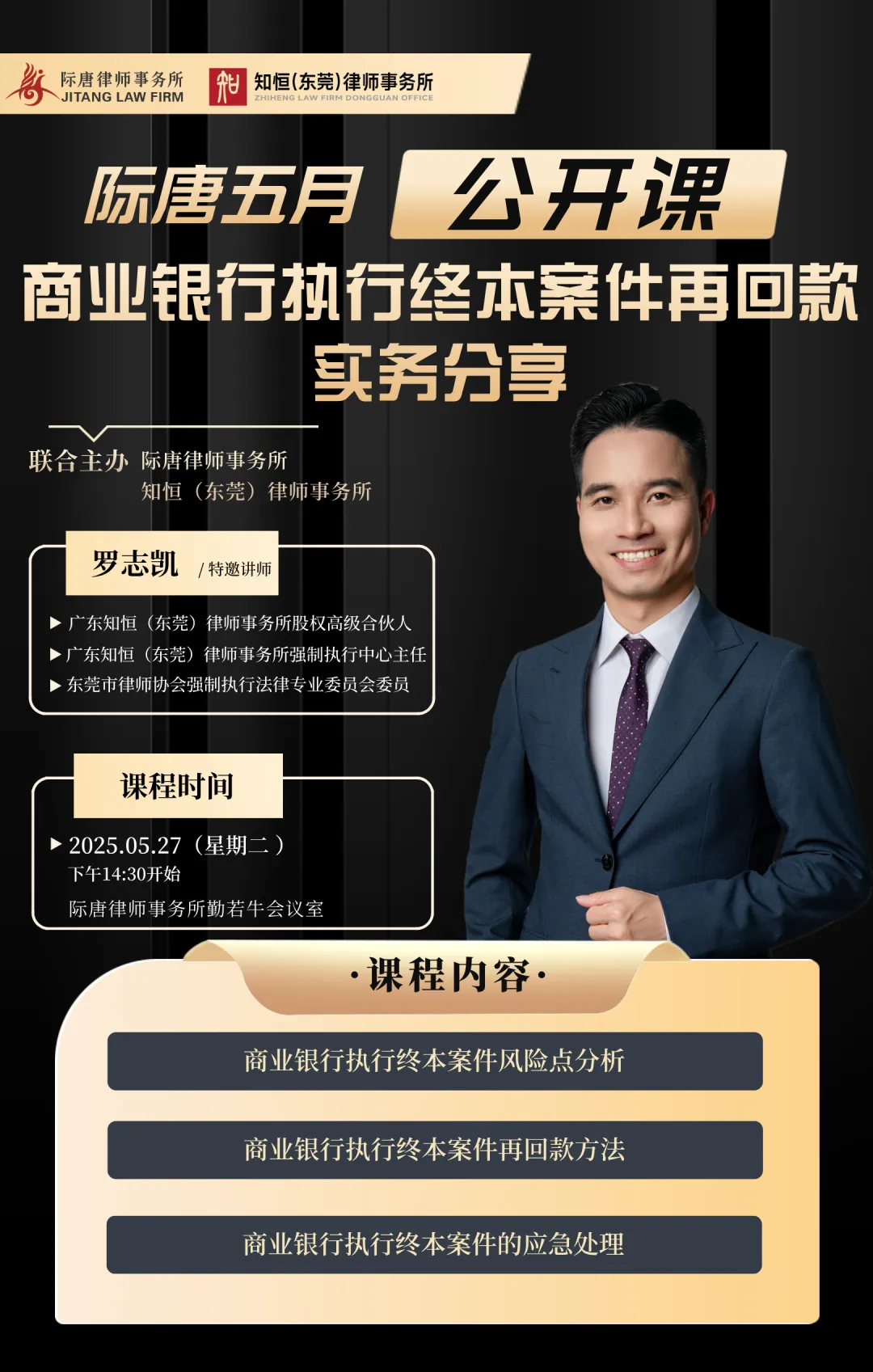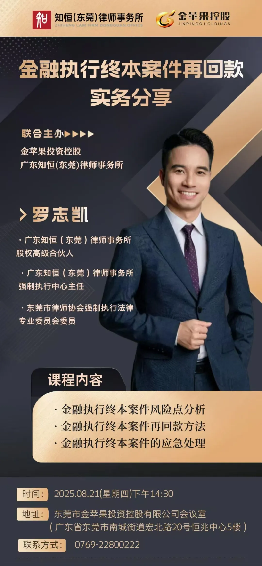 罗志凯律师受邀赴广东际唐律师事务所,为同行分享 《商业银行执行终本案件再回款实务》 ,将金融服务产品推向市场。