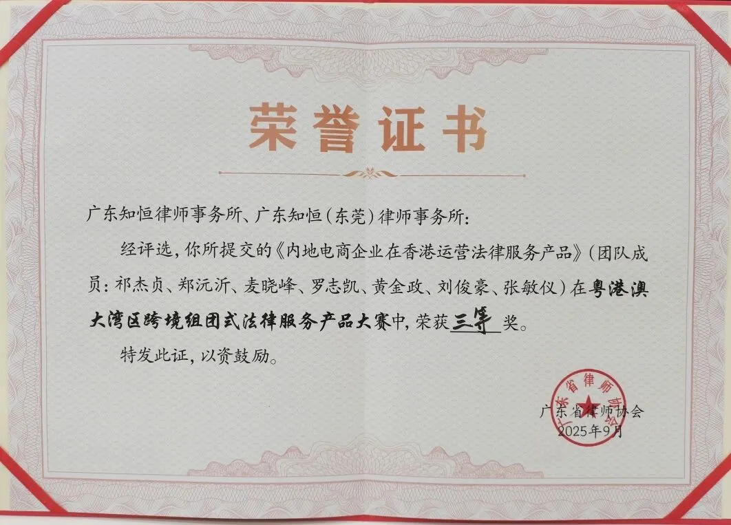 ○与总部合作的《内地电商企业在香港运营法律服务产品》荣获三等奖。