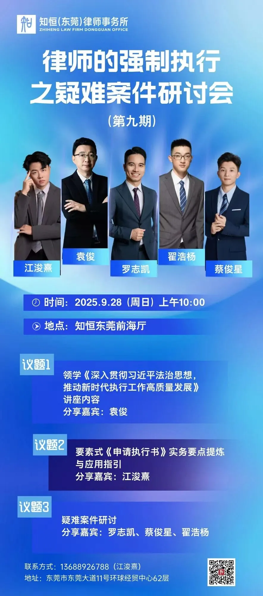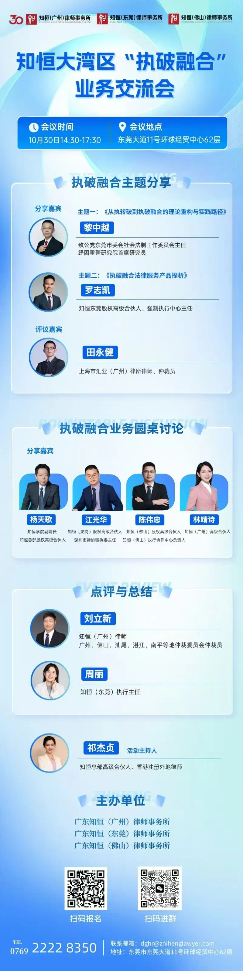 强执中心联合知恒广州、佛山分所成功举办 “知恒大湾区执破融合业务交流会” 。会议汇聚法院前资深法官、律协专委主任等权威专家,共同探索执行与破产程序的有效衔接。