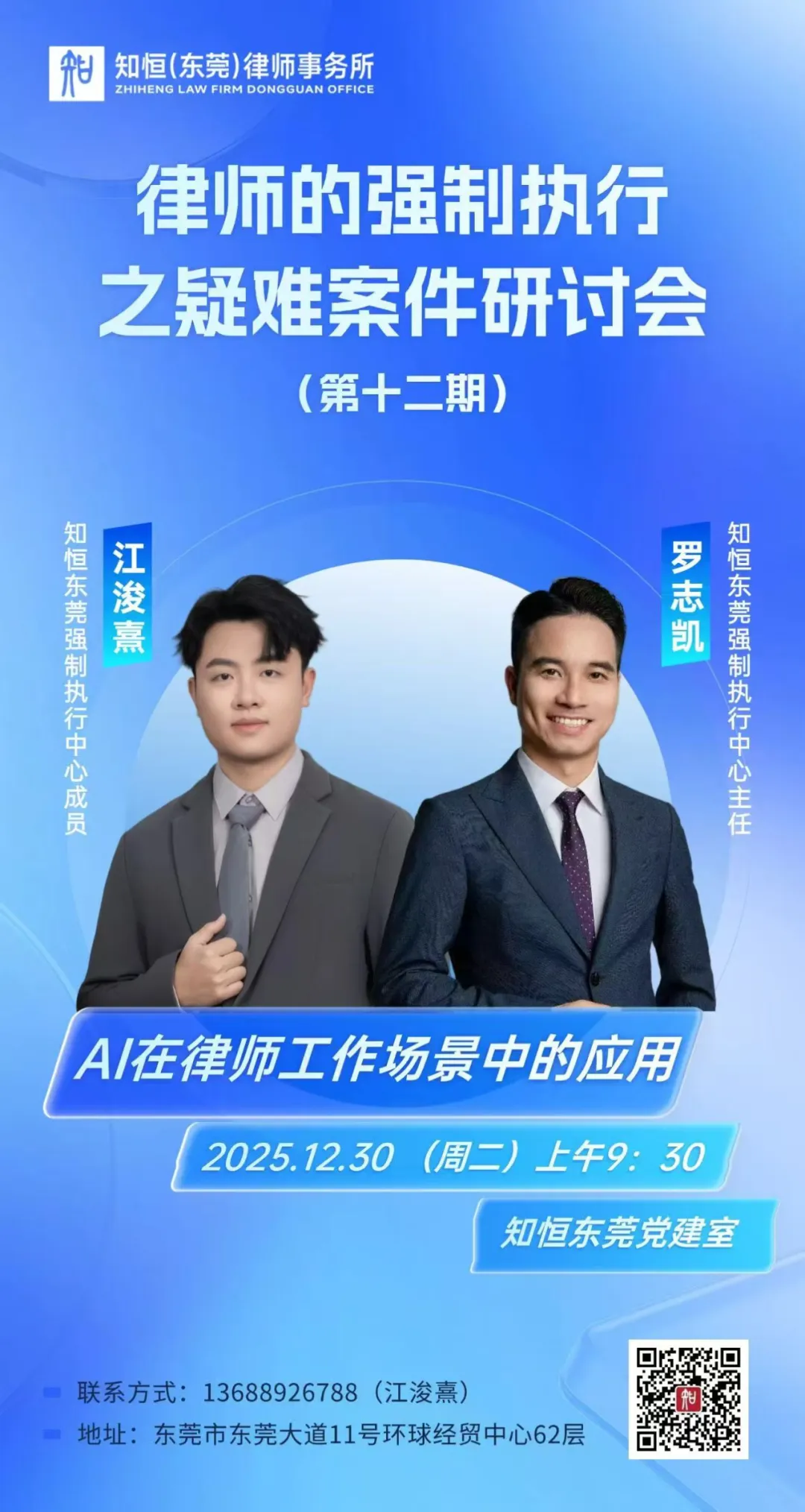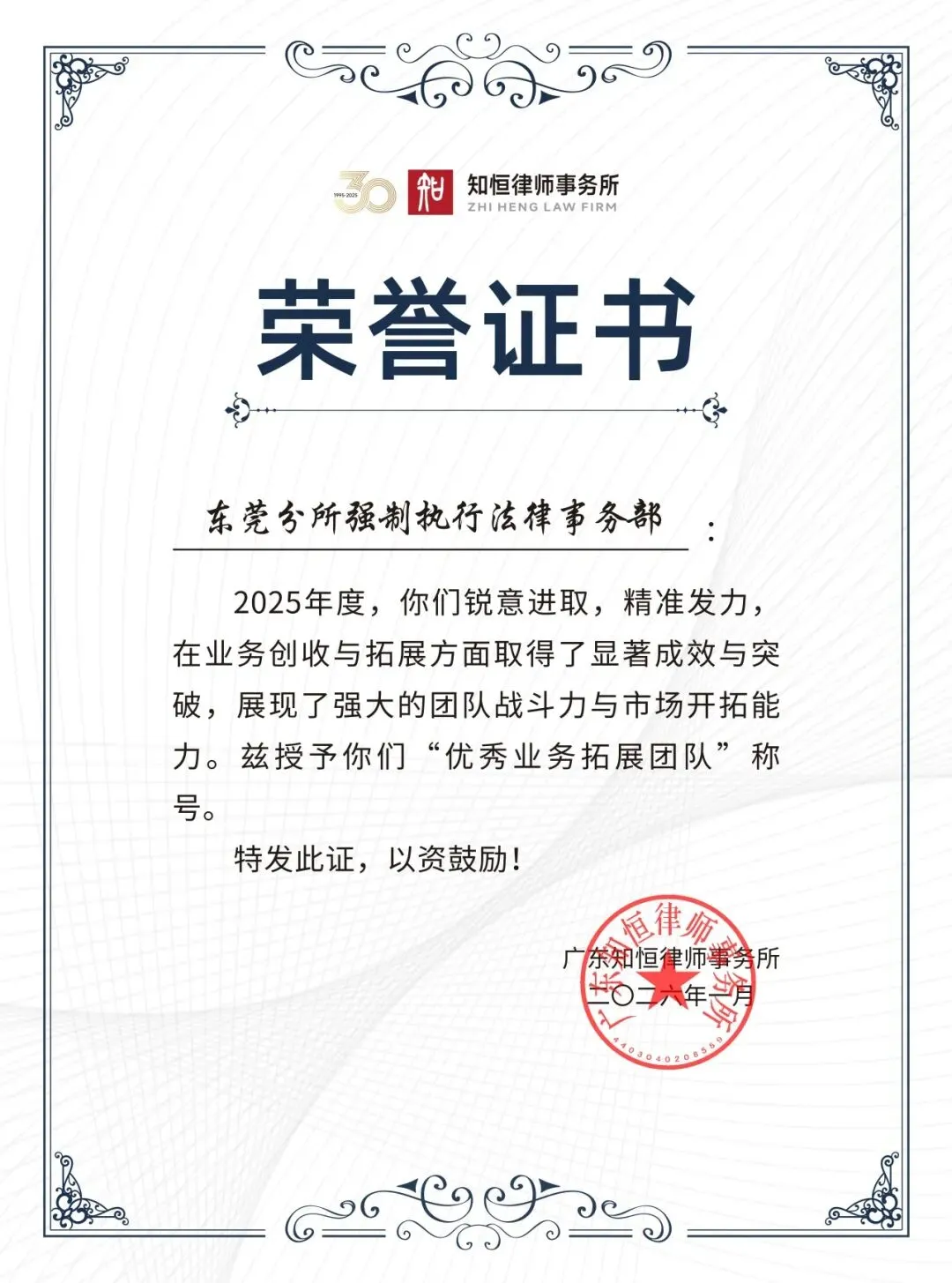 2025年,是广东知恒(东莞)律师事务所强制执行中心(以下简称“强执中心”)锐意进取、硕果累累的一年。在负责人罗志凯律师的带领下,中心在专业建设、品牌影响、人才培养、跨域协作四大维度全面突破,不仅夯实了在知恒(东莞)强制执行领域的专业,更推广了“知恒执行”的专业品牌。