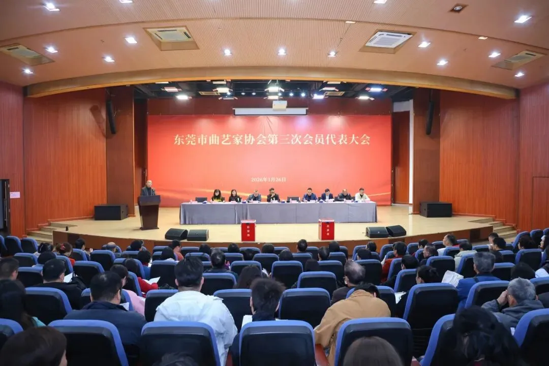 2026年1月26日,东莞市曲艺家协会第三次会员代表大会在东莞文联二楼礼堂召开。会议审议通过了上一届理事会工作报告、章程修订案等重要文件,选举产生了东莞市曲艺家协会新一届理事会、监事会、主席团。