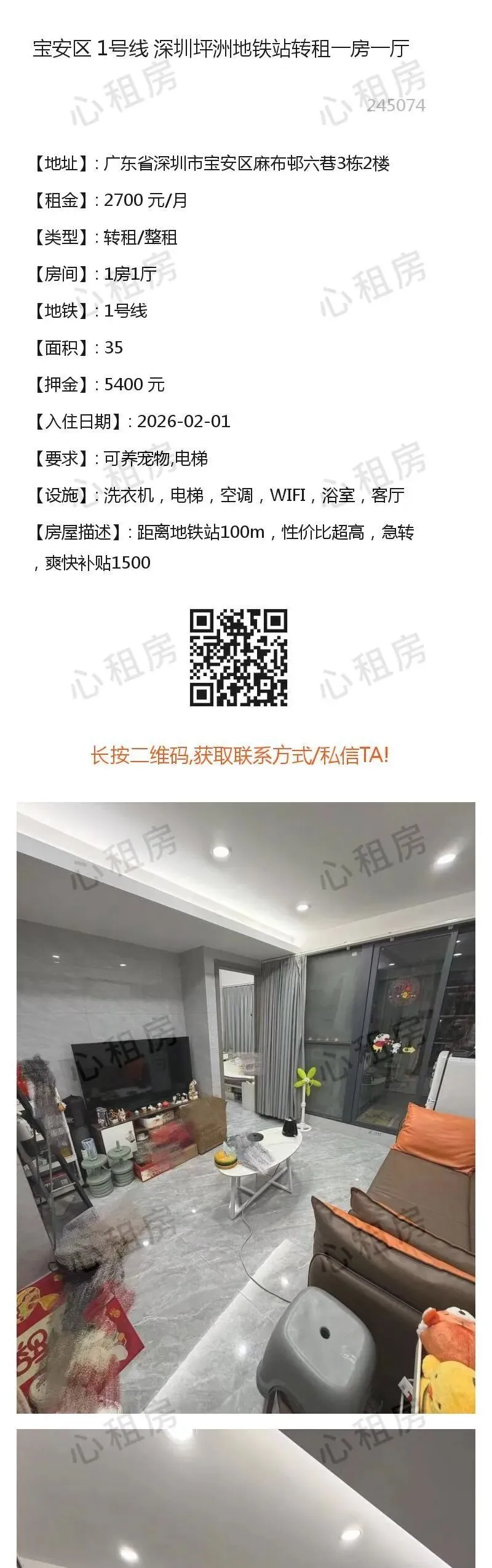 深圳租房【宝安3则】房源①:1号线深圳宝安坪洲地铁站转租一房一厅2700元/月;房源②:…