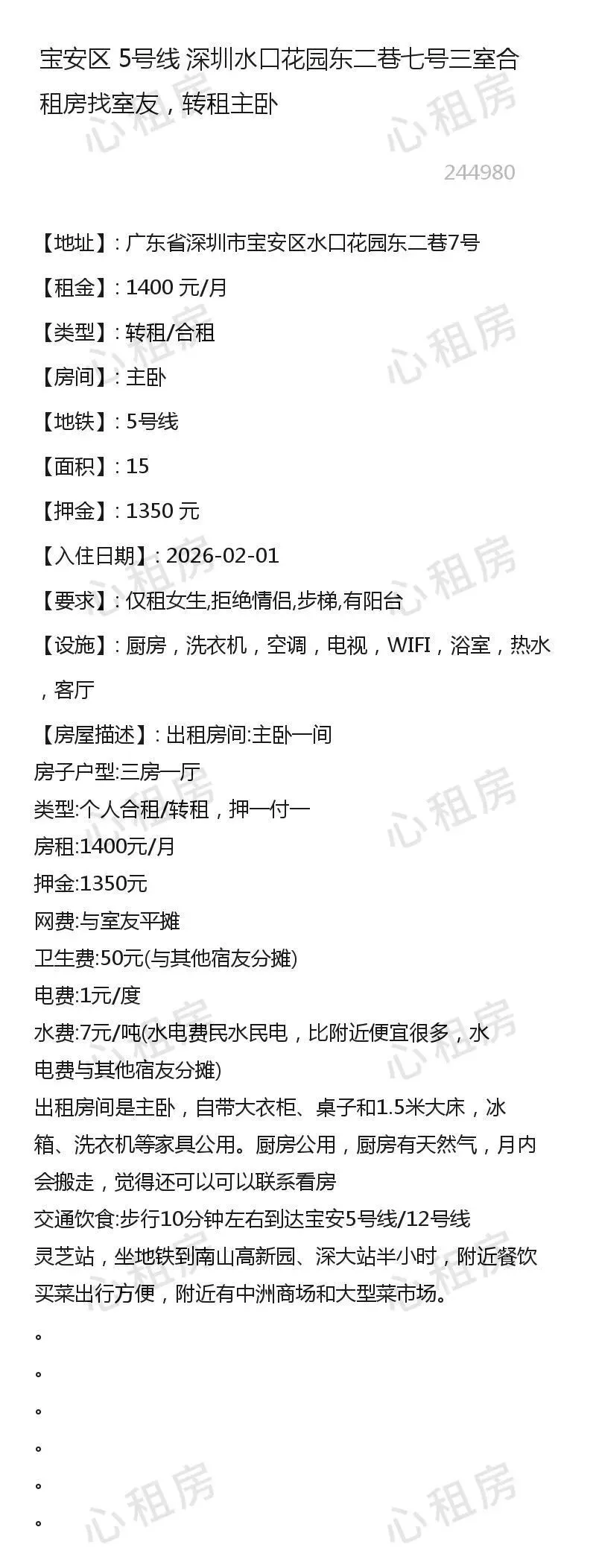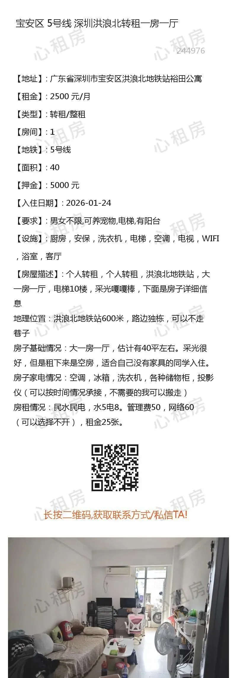 深圳租房黑房东找房子罗湖合找室友合租短租深租房科技园深大豆瓣南山租房地铁租房龙华新福田罗湖光明新区坪山新区大鹏南山豆瓣1、所有房源信息均由网友投稿,委托本公众号/心租房(homhere.cn)发布,房源的真实性、合法性由提供者负责。2、请务必核实双方身份信息(身份证)、房产权属(产权证明)、转租权利(租赁合同)等基本信息。3、请务必实地考察房源并确保与出租方提供的基本信息一致。4、切勿轻易支付定金、保证金、打赏等,建议签订《租赁合同》后再进行交易。5、双方在房屋租赁过程中产生的一切纠纷,均与本公众号/心租房(homhere.cn)无关。6、近期欺诈团伙在境外以相亲交友、租房、国际包裹等名义实施杀猪盘、诱导下载未知app等进行刷单返利等欺诈的行为较多,请先确认对方身份,保护个人隐私和财产安全。