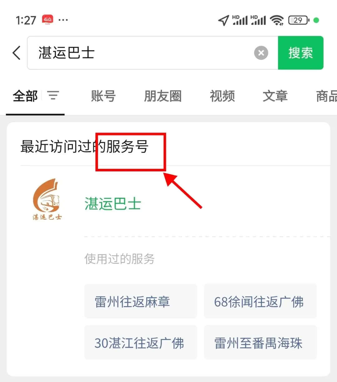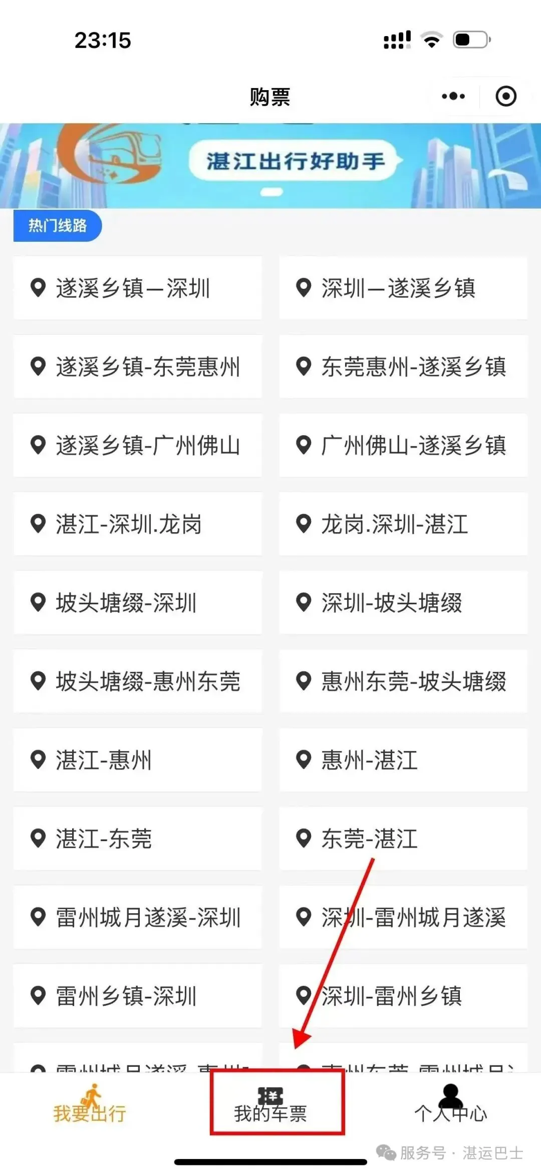 1.关注湛运巴士服务号