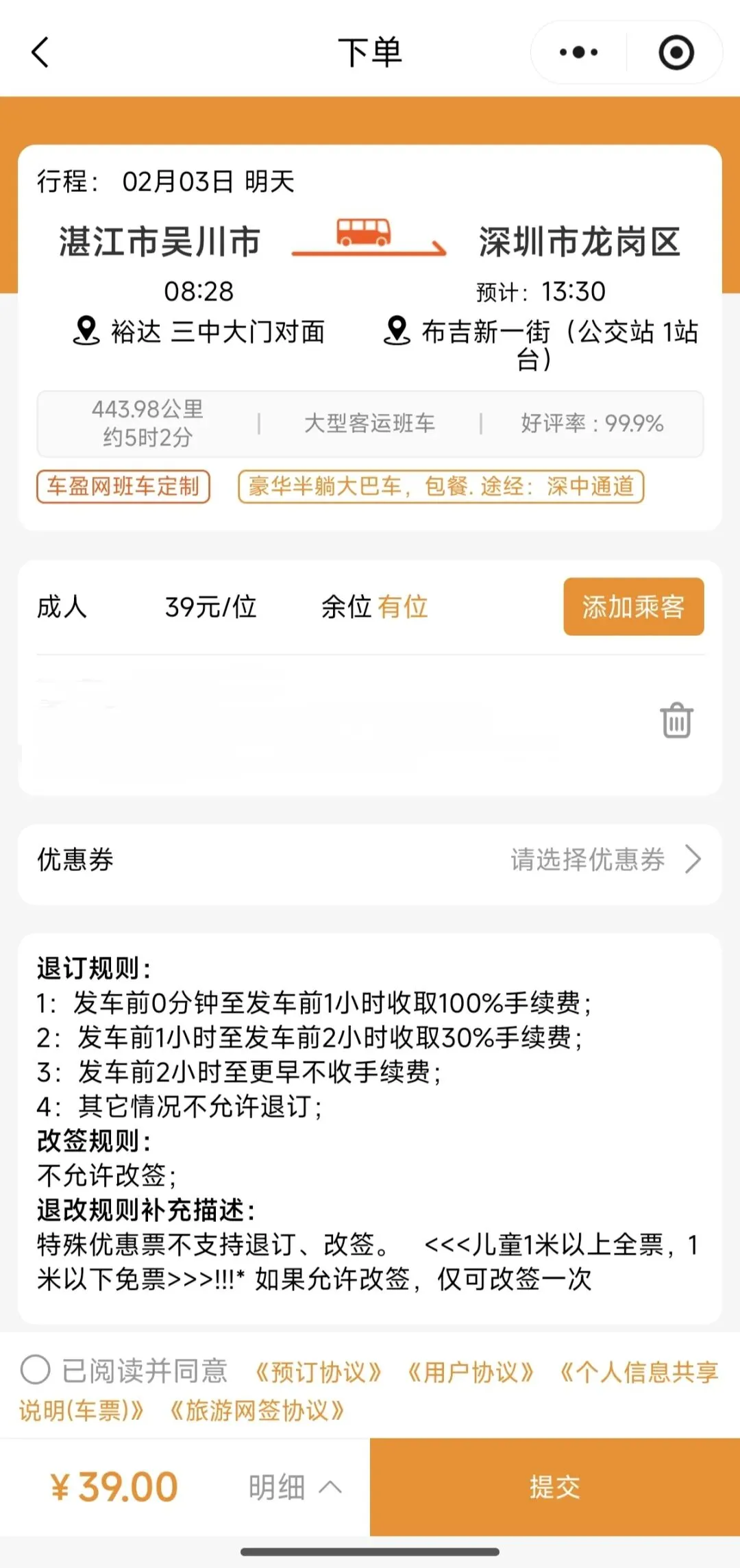 吴川到深圳东莞只要39元