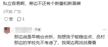 而家长在交流中也道出了一个值得重视的顾虑:片区内可供分流的两所民办校 —— 新蕾学校和新昌学校,近期也有拆迁的传闻。