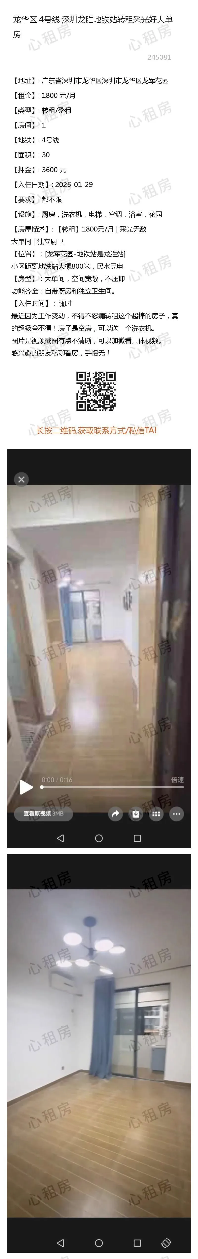 深圳租房【龙华&光明2则】房源①:4号线深圳龙华龙胜地铁站转租采光好大单房1800元/月;房源②:.........