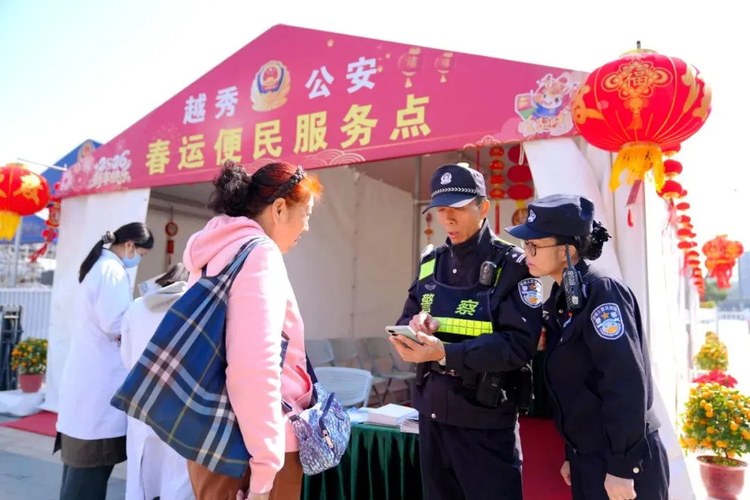 在确保安全的前提下,警方推出系列便民服务,在站场内外增设服务点、加强指引咨询,并联合多部门向旅客提供防骗、防盗、防火等安全知识。此外,通过多种平台提前发布温馨提示和禁限带物品清单,及时收集并反馈旅客意见。春运期间,越秀警方继续在广州火车站广场设立母婴候车室,为特殊旅客提供便利。