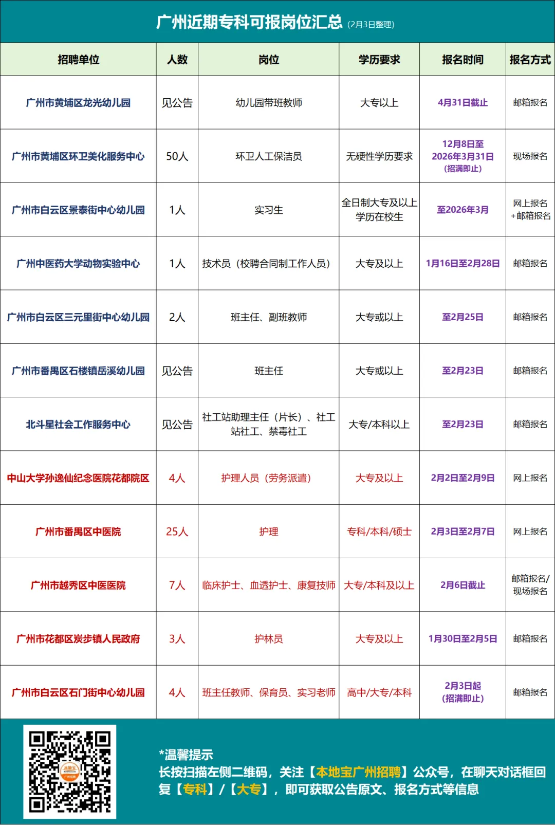 ✅推荐服务:可在“番禺区中医院医疗集团”公众号获取招聘信息,或关注【本地宝广州招聘】→回复【中医】即可获取招聘公告原文!