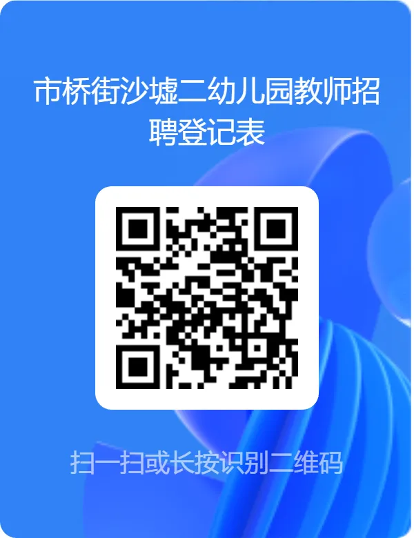 (二)请扫描下方二维码填写《市桥街沙墟二幼儿园教师招聘登记表》。