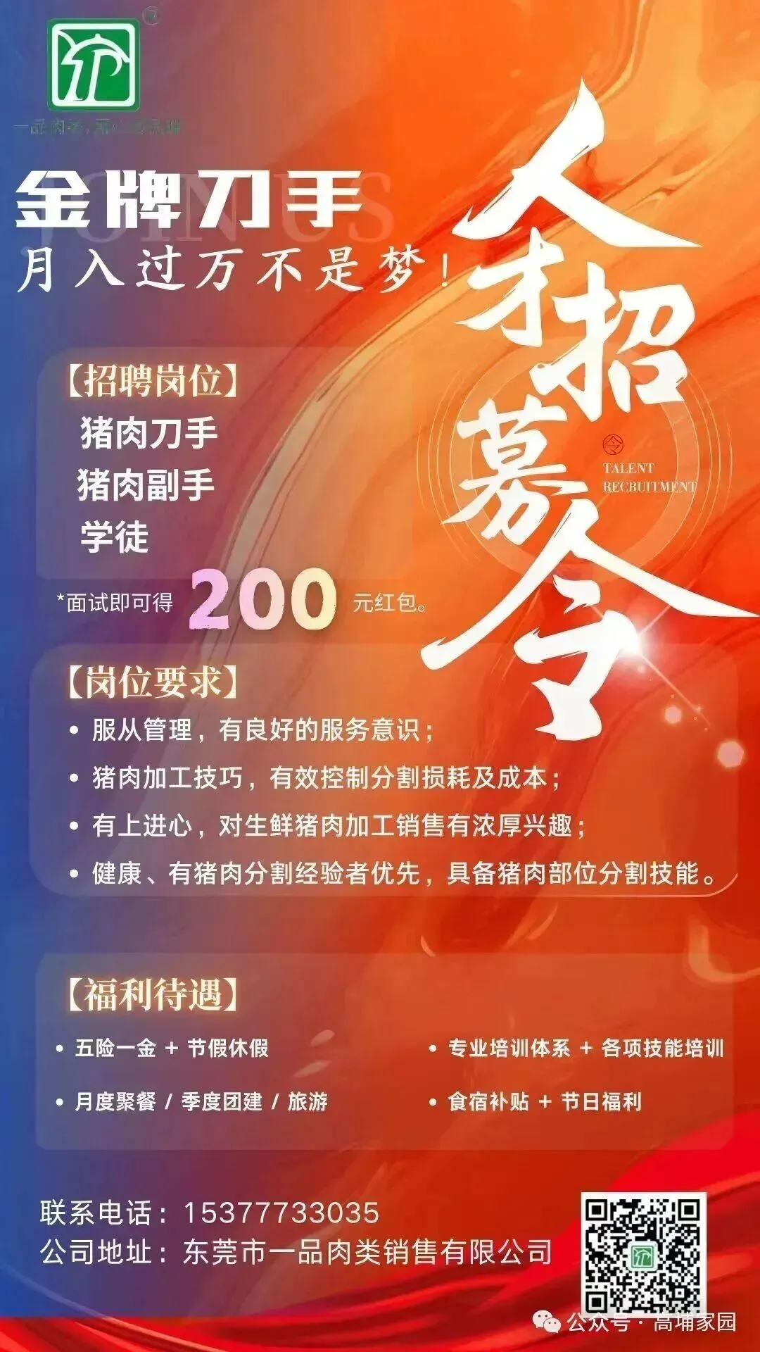 东莞一肉类销售公司招聘