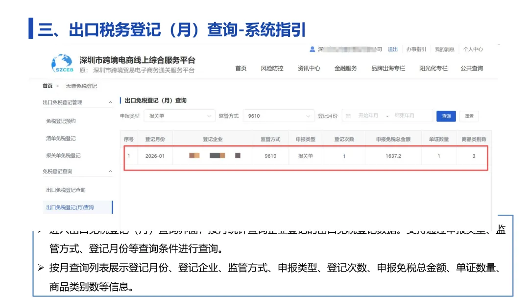 从流程来看,企业在深圳市跨境电商线上综合服务平台办理“无票免税”登记,可实现从预约到数据确认的全流程线上操作。企业只需登录平台官网,进入“无票免税登记”模块,即可完成相关操作。