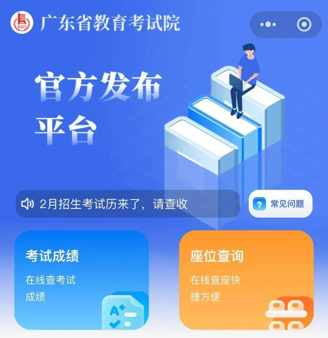 考生于2月3日(“3+证书”10:00起,学考11:00起)起,通过百度App搜索“广东省教育考试院”,打开“广东省教育考试院—智能小程序”,点击“考试成绩”,输入考生号和密码登录查询成绩。