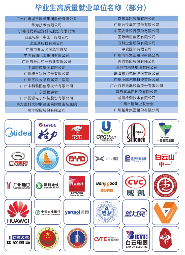 根据“广东省就业系统”、“广东省教育厅职业院校满意度调查平台”数据统计,我校近五年毕业生总体去向落实率(就业率)超96%、用人单位满意度98%、毕业生满意度96%、家长满意度97%,在全省高职同类院校中位居前列。