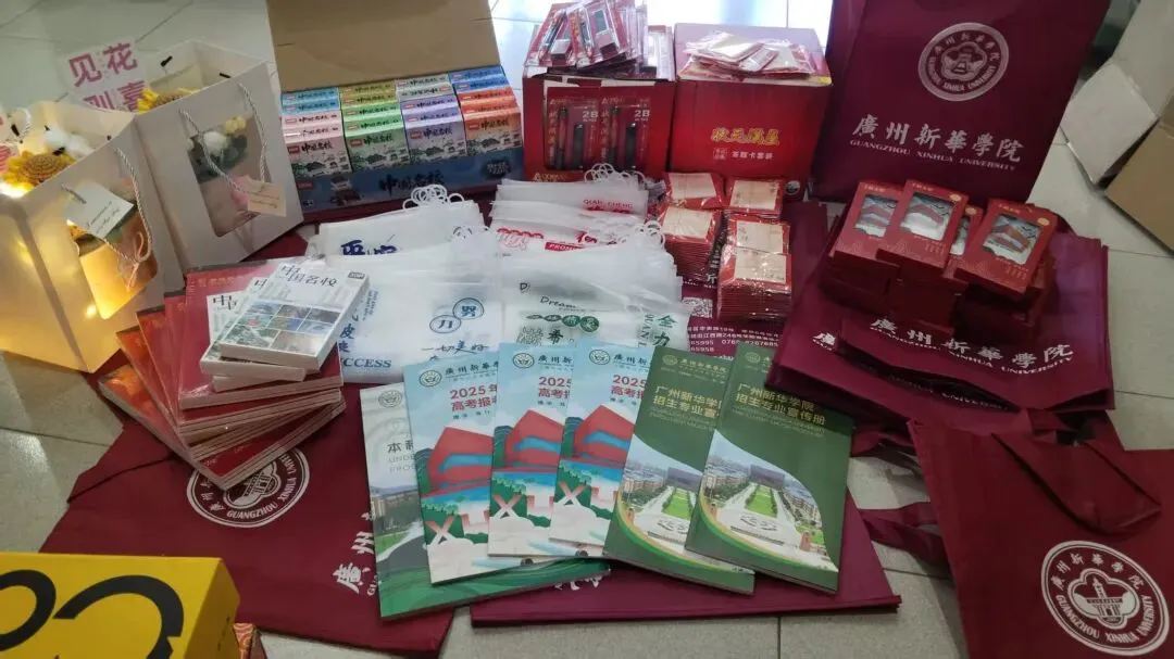 为确保母校回访顺利开展,团队成员早早投入紧张有序的准备工作之中。广州新华学院为本次活动配备了丰富实用的宣传物资与纪念礼品,队员们齐心协力,对照清单仔细分装,确保每一份心意都能准确送达。