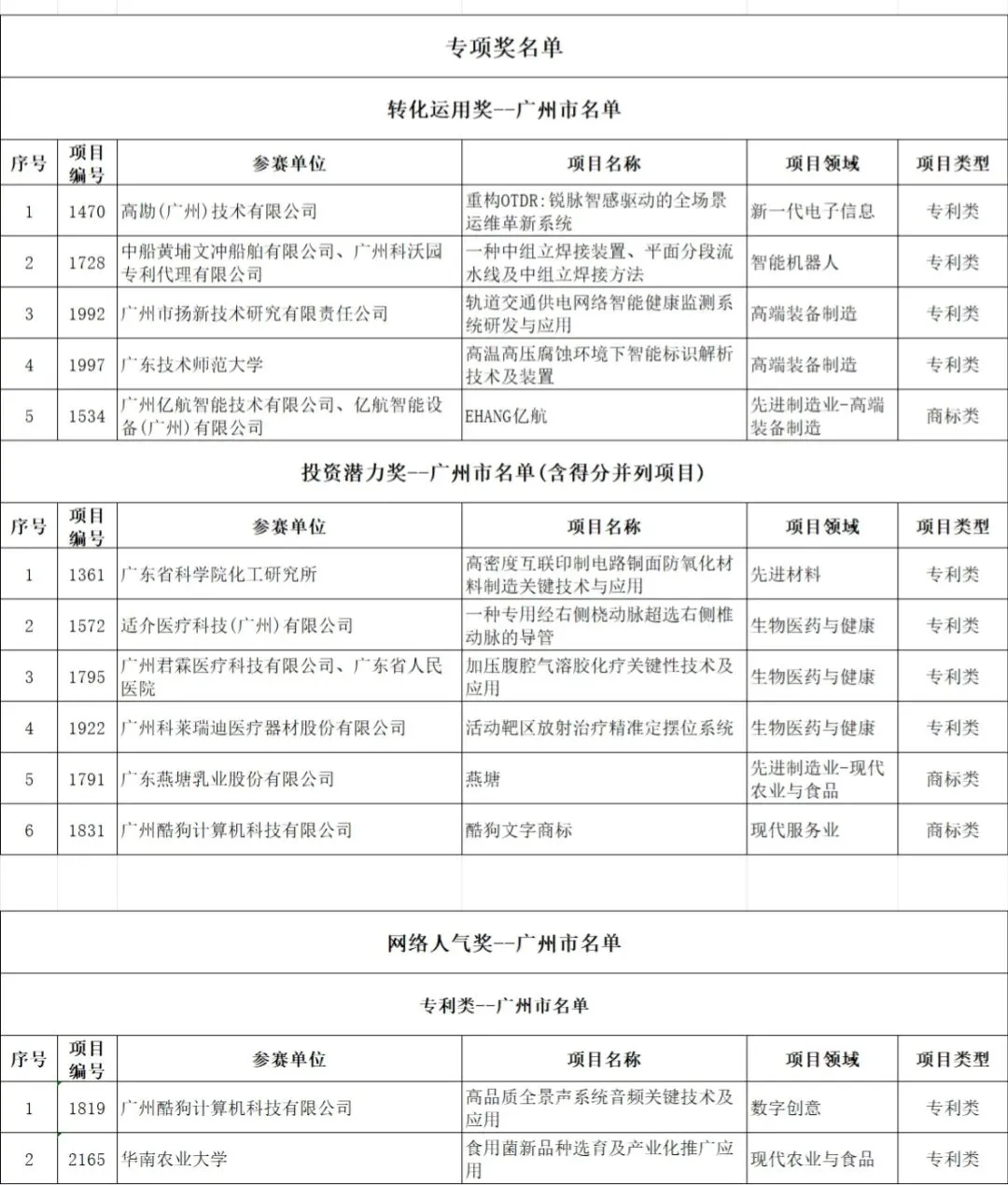 本届大赛共评选出金奖10项、银奖20项、优秀奖31项以及专项奖51项,覆盖新一代信息技术、高端装备制造、生物医药、新材料等重点产业领域。