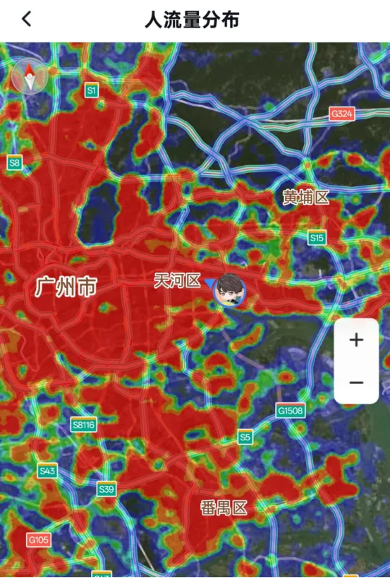 我们一般看一个区域是不是有热度,有人气,都会打开地图看一眼热力图,还是很直观的。