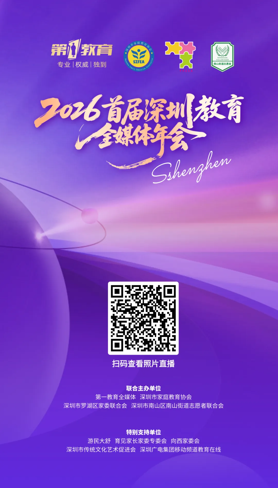 2026年2月3日,2026首届深圳教育全媒体年会在前海深港青年梦工场圆满落幕。本次年会以“2025深圳教育全媒体大事记”为核心主题,由第一教育全媒体、深圳市家庭教育协会、深圳市罗湖区家委联合会、深圳市南山区南山街道志愿者联合会联合主办,深圳广电集团移动频道教育在线、游民大舒、深圳市传统文化艺术促进会、向西家委会等多家单位鼎力支持。