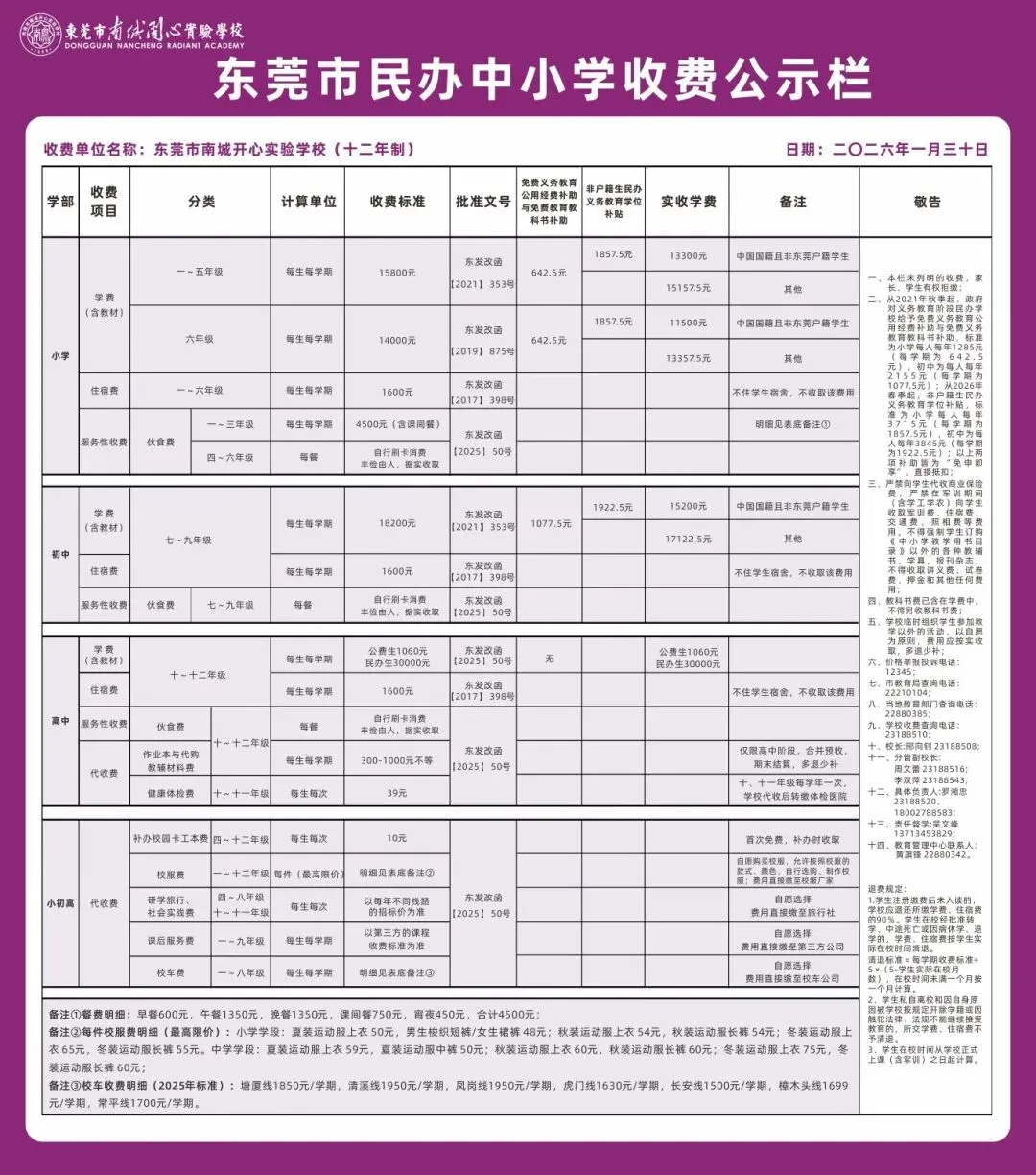 依据东莞市《关于加强学校教育收费公示管理工作的通知》的相关要求,现将我校收费标准公示如下: